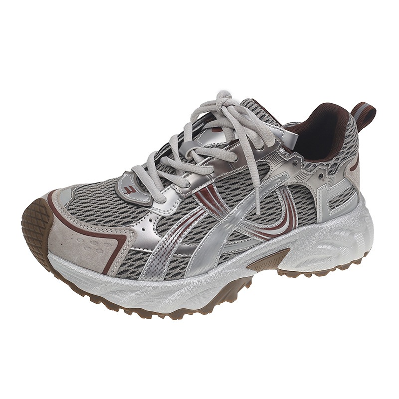 レディース 本革 通気性メッシュ チャンキーシューズ 2025年夏新作 厚底 身長アップ 万能 薄型 カジュアル ランニングシューズ