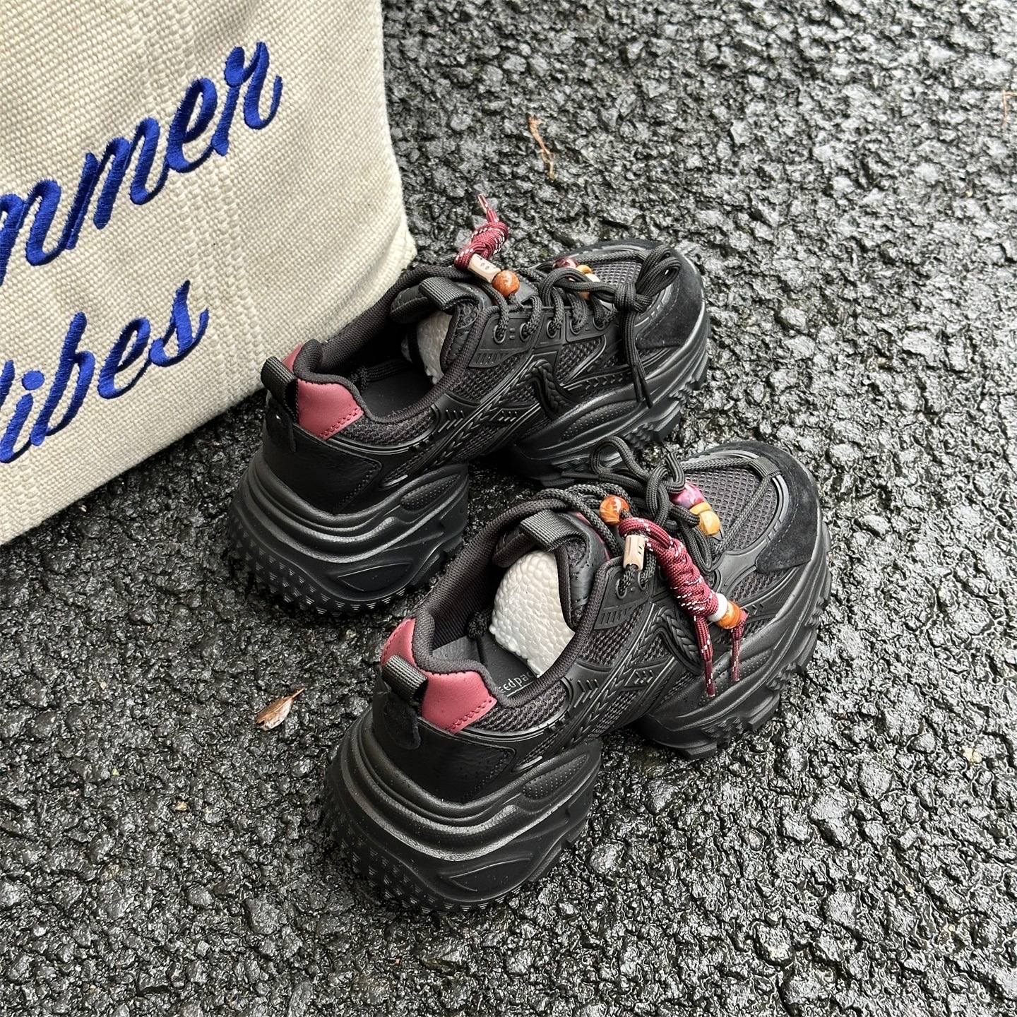 本革7cm厚底チャンキーシューズレディースシューズ2025年秋冬新作身長アップ通気性メッシュカジュアルスポーツシューズ