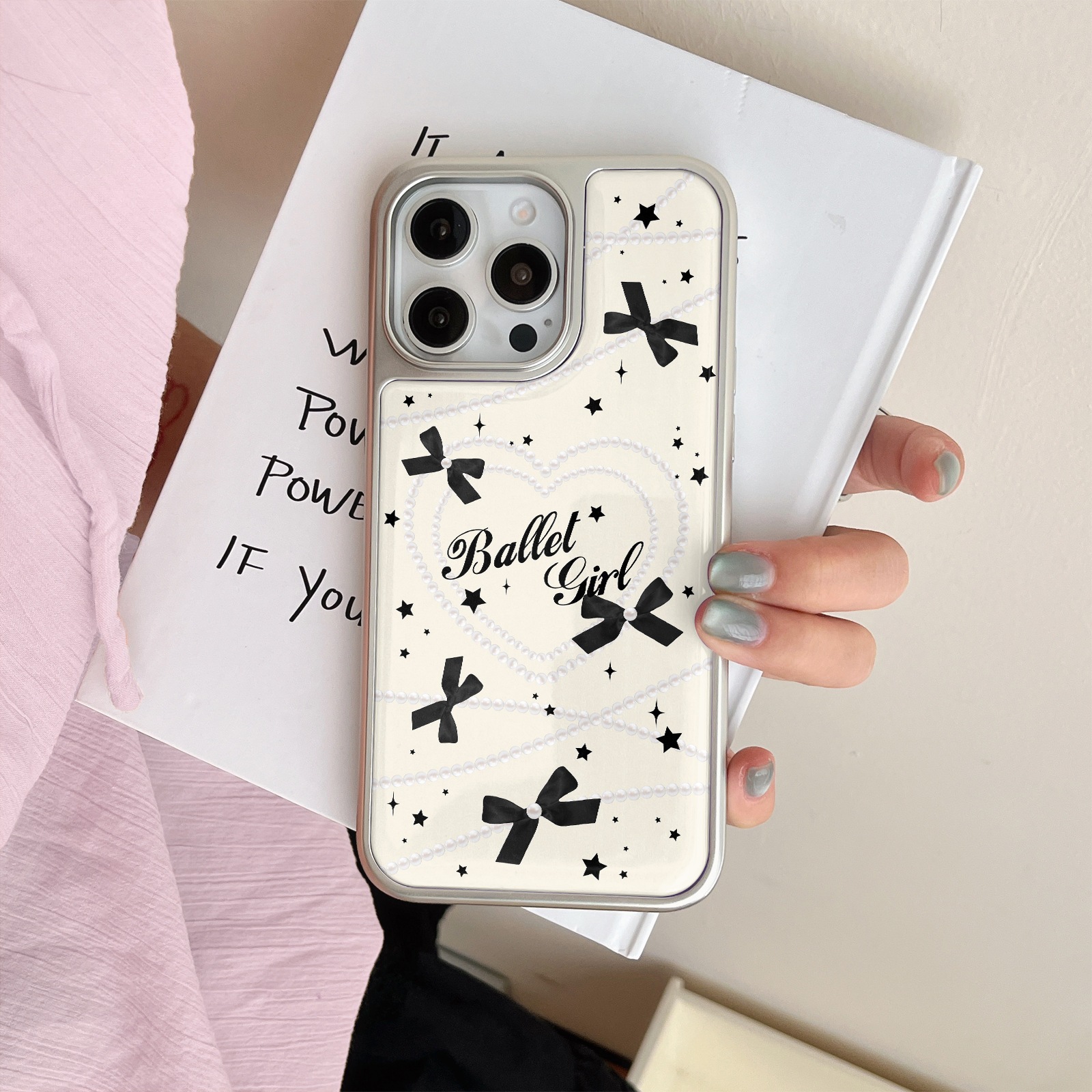 ブラックリボンデザイン アップル17対応 メッキ加工 大穴デザイン 滴下加工 iPhone14/15ケース iPhone13 Pro Max