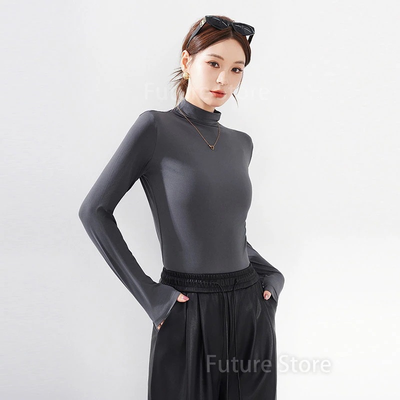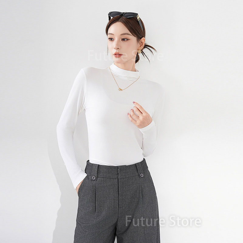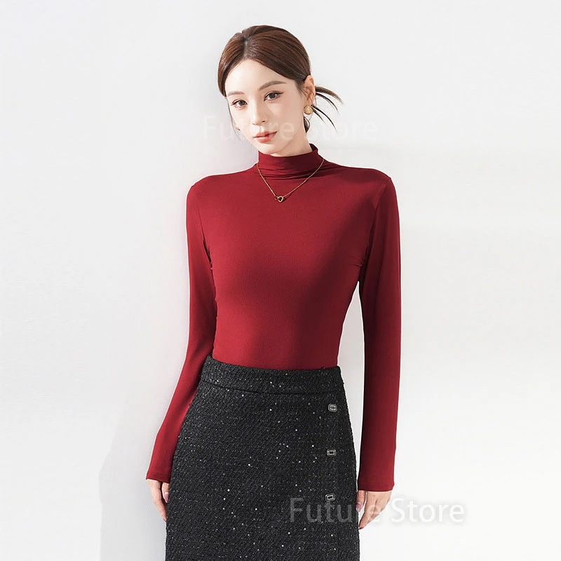 インナー 長袖 インナー 暖かい レディース 暖かい 肌触りが良い 軽やかで快適 おしゃれ スリムめ シンプル 裏起毛 秋冬 やわらか肌触り ライトパープル ディープレッド
