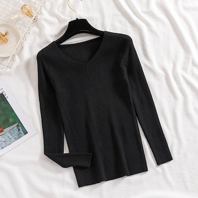 トップス ニットソー 長袖 Vネック プルオーバー ミディアム丈 可愛い かわいい 大人可愛い きれいめ シンプル 上品 おしゃれ かっこいい カジュアル こなれ感 個性的 主役級 存在感 レトロ