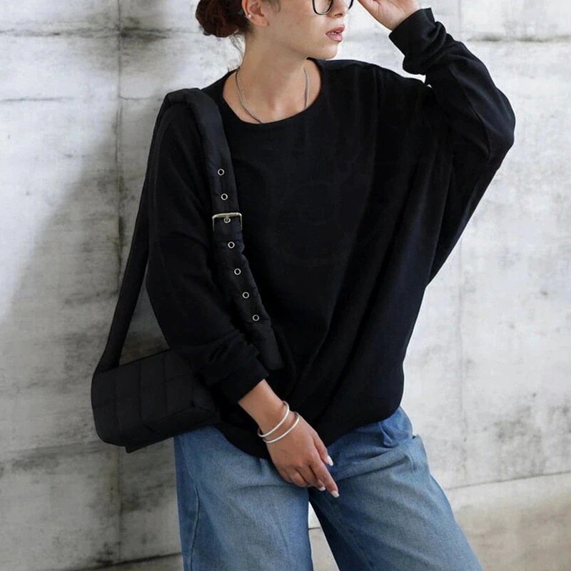 【送料無料】日系レディーススウェットシャツ秋の新作 高級感あるラフなスタイルのゆったり無地ラウンドネックカジュアルトップスTシャツ・ラウンドネックスウェットシャツ