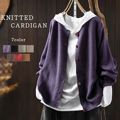ニットカーディガン レディース 春 秋 冬 秋冬 長袖 コットンニットカーディガン カーディガン クルーネック ニット ゆるカーディガン ニットカーデ 羽織り 上着 ゆったり シンプル