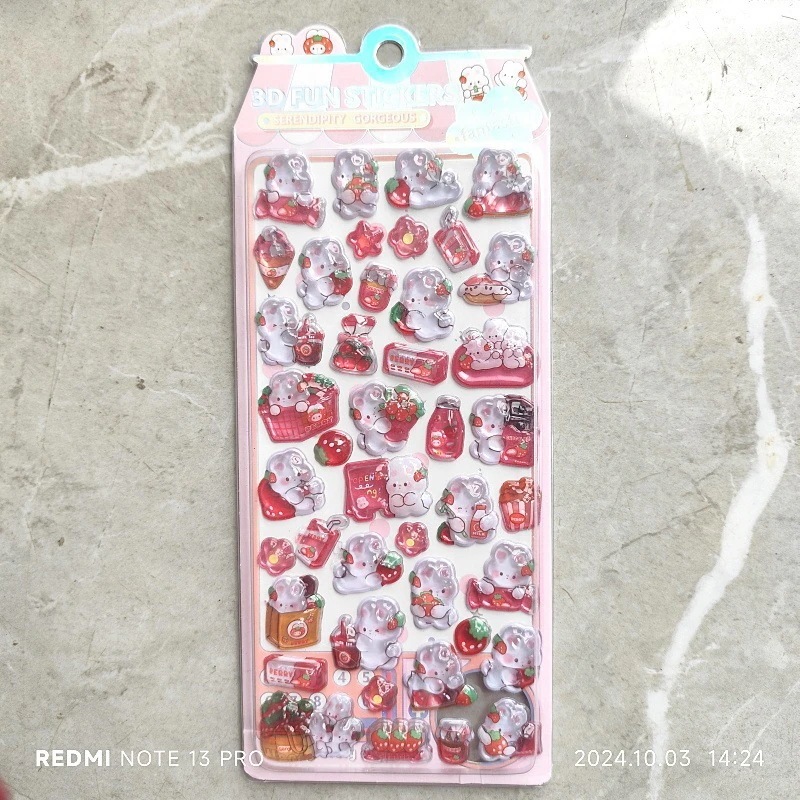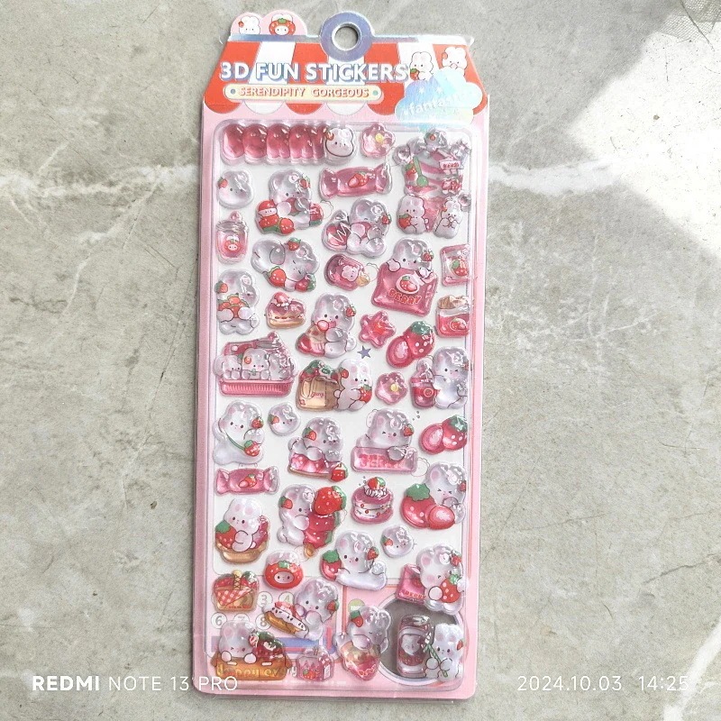 【翌日配達可】3D立体シール ぷっくり水晶うさぎシール(いちごデザイン) おはじきシール 女の子 Diy おしりシール エンボス シール おはじきシール シール帳 交換 シール帳 女児