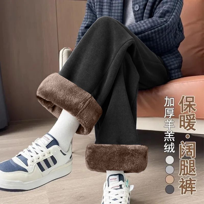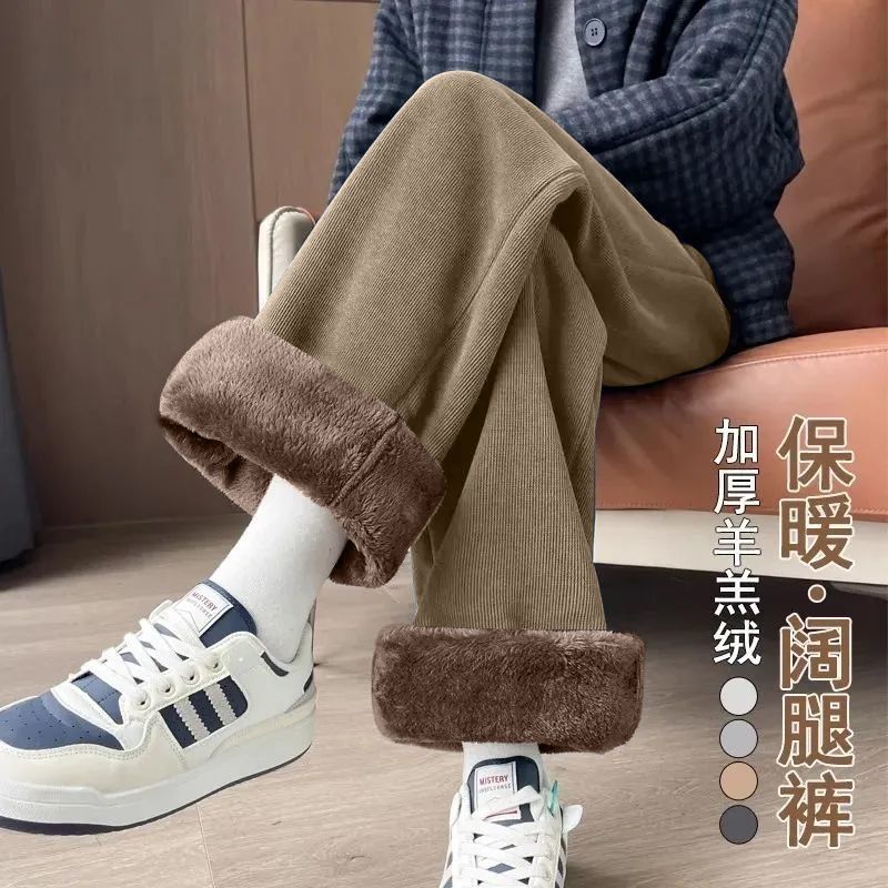 秋冬 ラムウール 裏起毛 厚手 カジュアル ズボン レディース 2025 冬 新しい ハイウエスト 超厚い ストレートパンツ