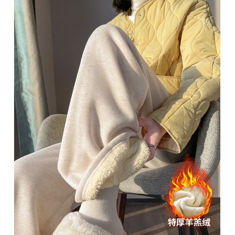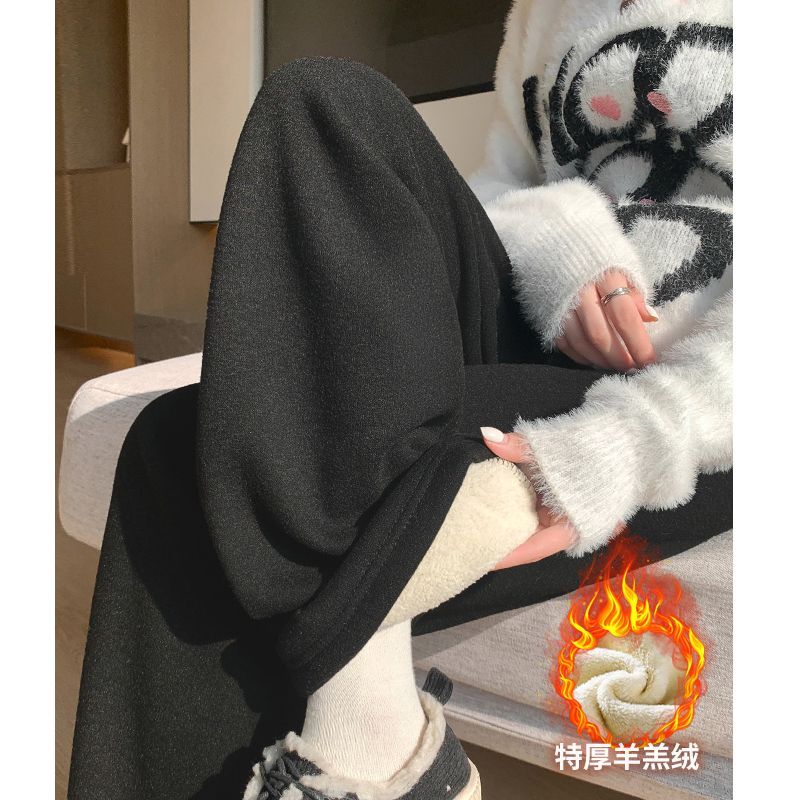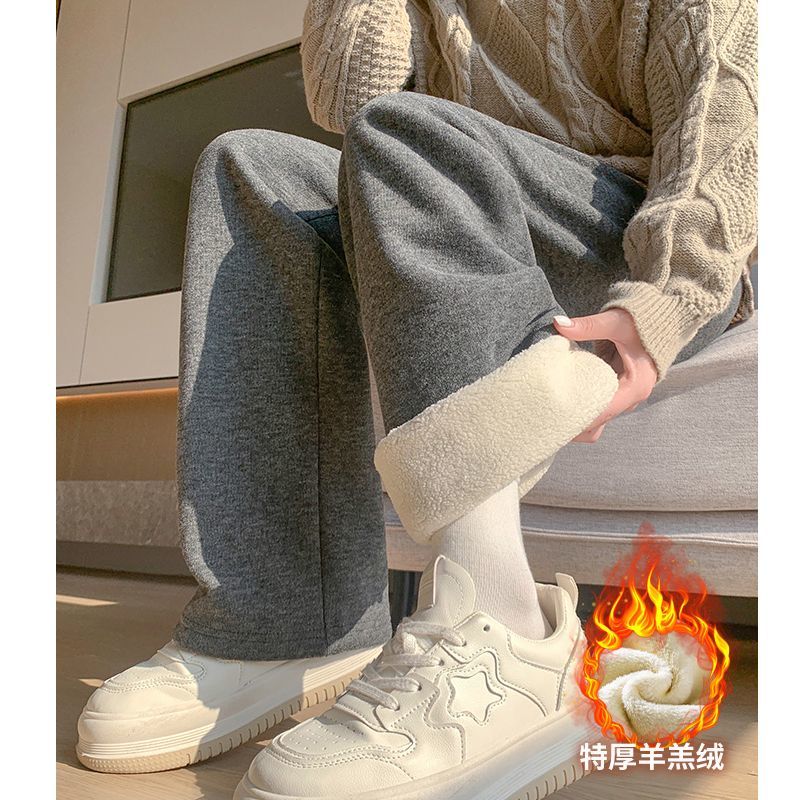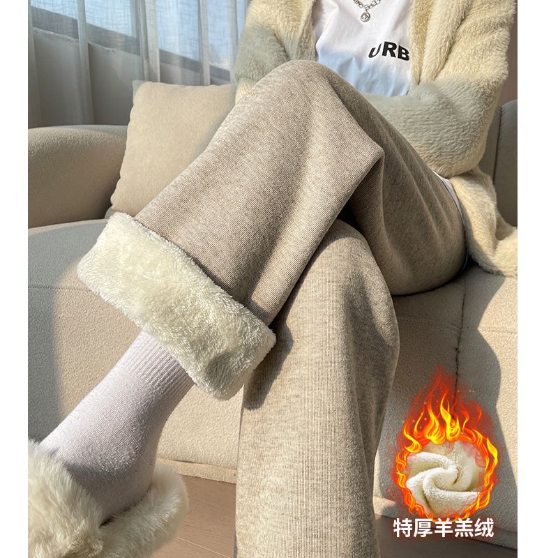 裏起毛 グレー レディース ゆったり 暖かくし もち米 ズボン ハイウエスト 厚手 ラムウール ワイドレッグ