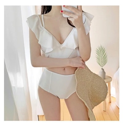 チェストギャザー スプリットビキニ 小さな香りの風 ハイウエスト お出かけ ネットセレブ 女性 独特の存在感韓国ファッション C 水着 セクシー
