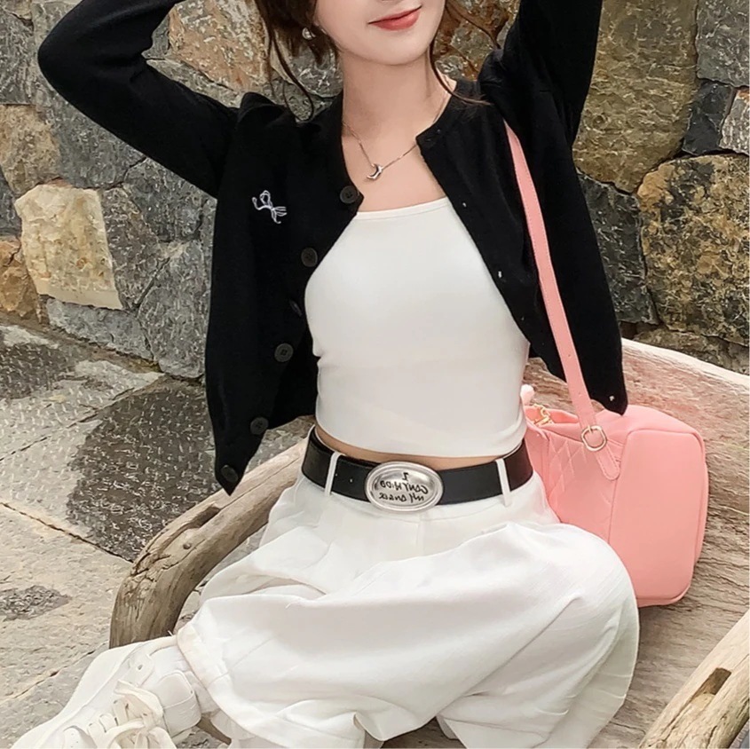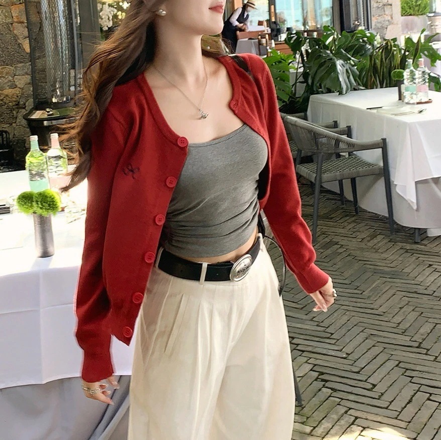 カーディガン薄手2025秋新作刺繍ショートニットニットセーター コート長袖トップスシングルバックルニットカーディガン