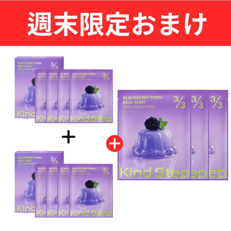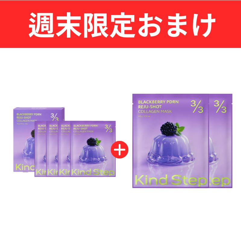 この度、サンプルマーケットで当選したKind Step ブラックベリーPDRN リジュショット コラーゲンマスクを、1枚だけ早速使ってみました!届いた瞬間からテンションが上がりました♪パッケージを開けると、とろみのあるゲルタイプの美容液がたっぷり染み込んだコラーゲンマスクが1枚入っていました。マスクは顔の上・下に分かれていて貼りやすく、首元までケアできるデザインが嬉しいポイントです。お風呂上がりに顔に貼ってみると:ぴたっとしっかり密着して、液だれしにくい冷たくて気持ちいい付け心地良い香りに包まれてリラックスできましたパックが徐々に透明になっていく様子が不思議で、約30分くらい置いてみました!剥がした後の肌はもっちり・しっとりとして、ハリとツヤが出てきた感じがします。特に乾燥しやすい頰や目元が柔らかくなり、翌朝の化粧ノリも良かったです!当選したおかげで、気になっていたPDRN配合のマスクを1枚だけ試せました。1枚でもしっかり効果を感じられたので、本品(4枚入り)も気になります! また機会があれば他の商品も試してみたいです♪