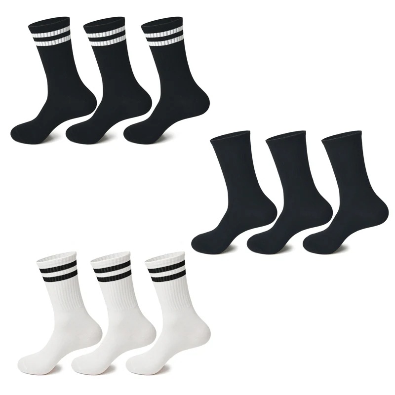 靴下 メンズ 3足 セット ライン 無地 綿 ソックス カジュアル ビジネス 通学 スクール スポーツ 学校 部活 クルーソックス 黒 白 25-28cm 男性用 クリスマス プレゼント