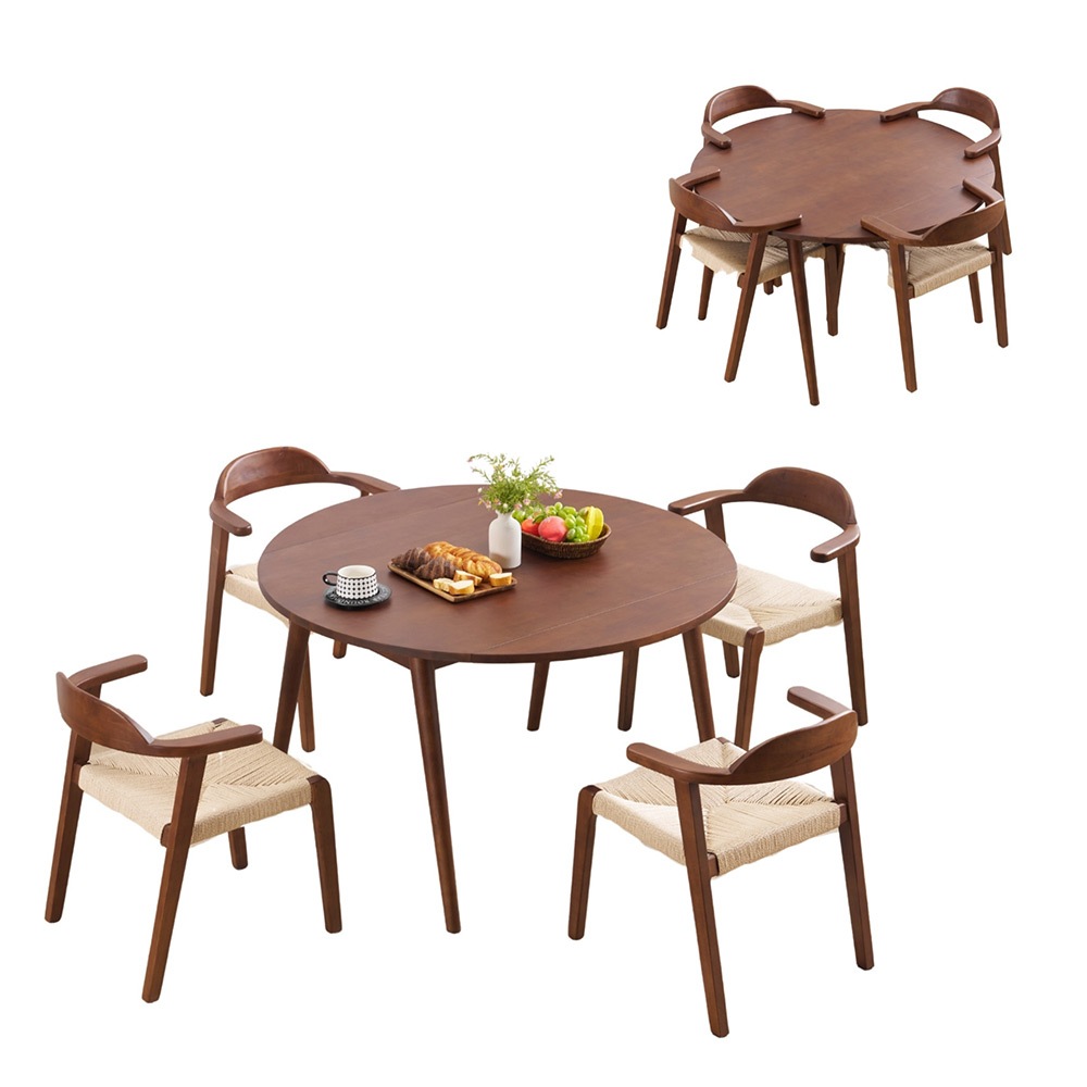 【国内即日発送】【5点セット】ダイニングテーブル1点×チェア4脚 4人用 伸長式ダイニングテーブル 折りたたみダイニングテーブル 円形 半円形 幅120 伸縮 4人掛け 北欧 コンパクト おしゃれ 多