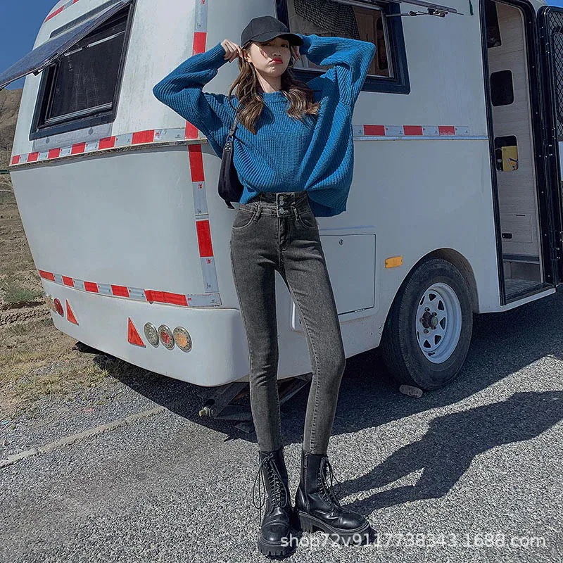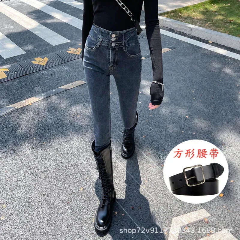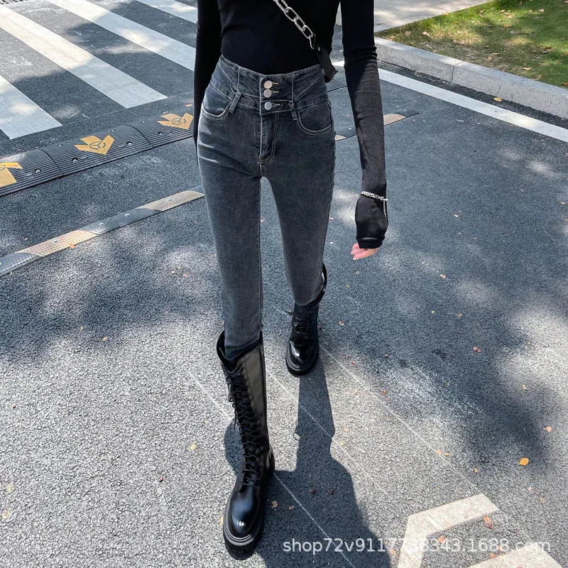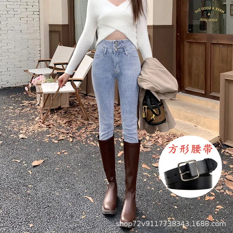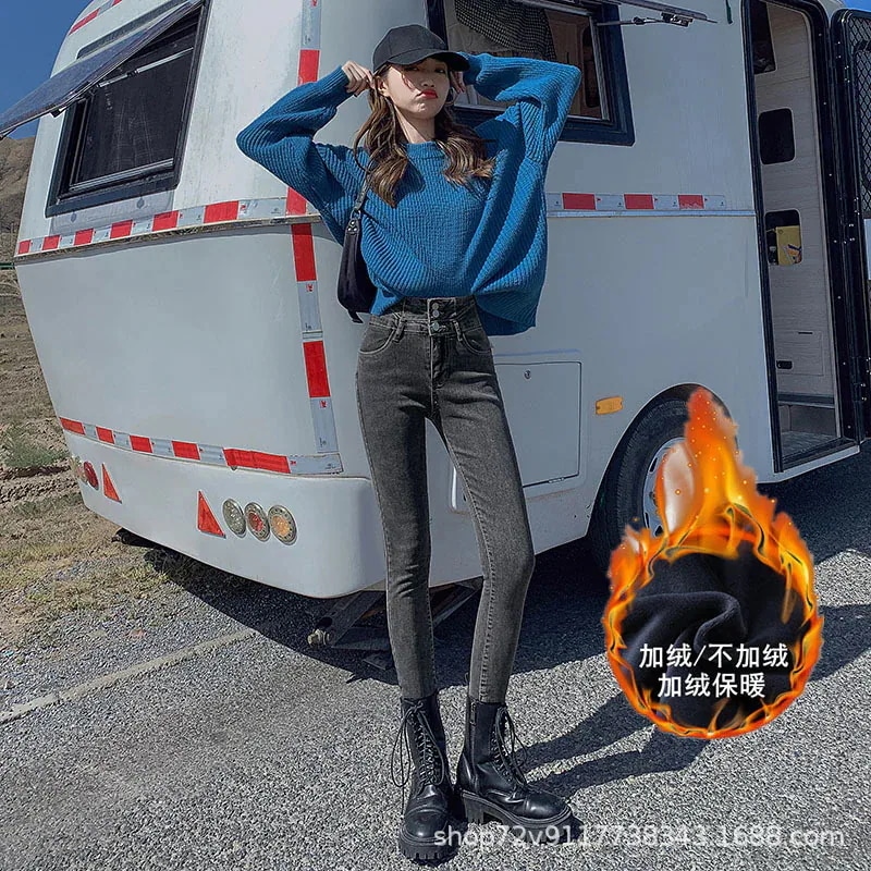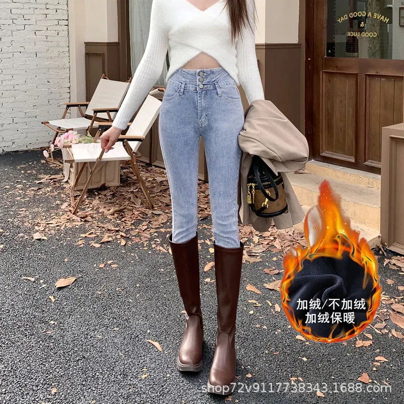 人気新作 秋冬 防寒 ロングパンツ 秋冬 裏地付き 新作 ハイウエスト スキニーデニム 低身長 細身効果 身長アップ ストレッチ スキニー ペンシルパンツ 女性