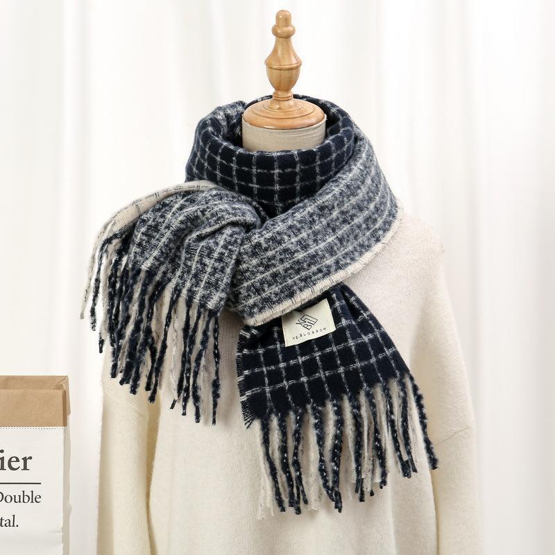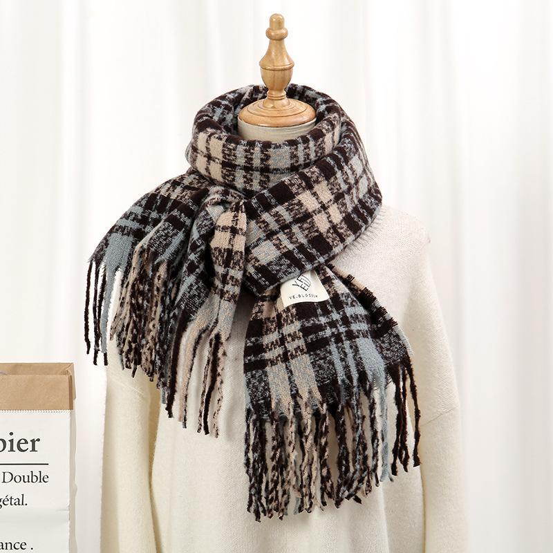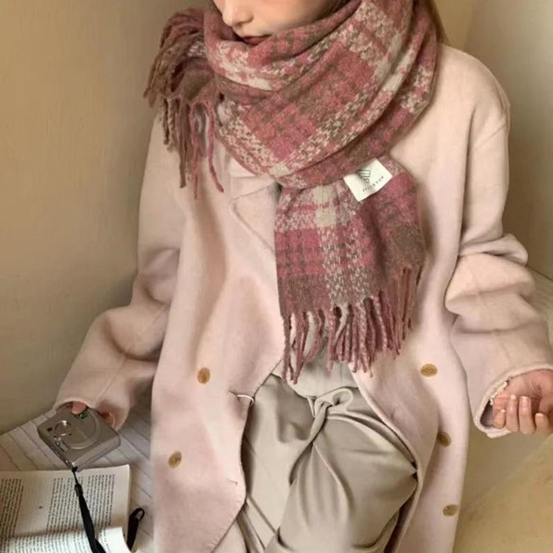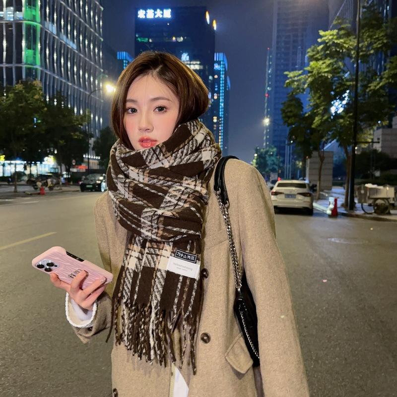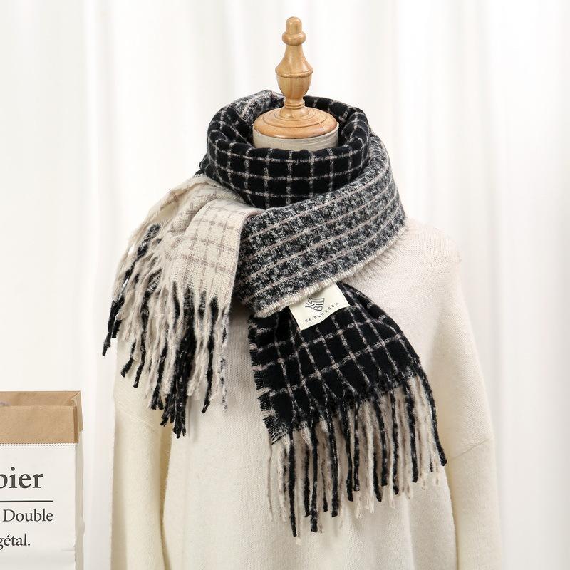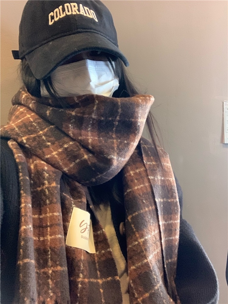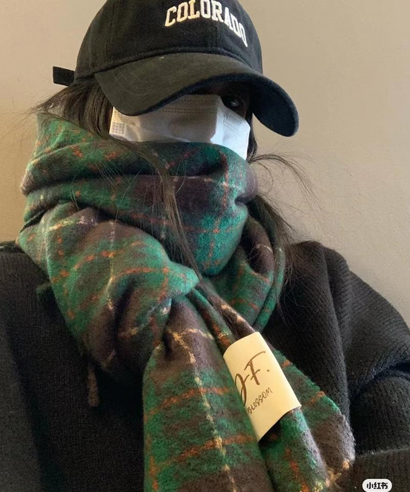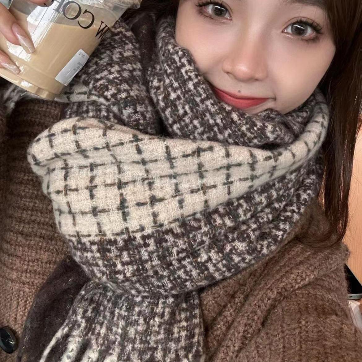 おしゃれな韓国風パッチワークフェイクカシミアチェック柄スカーフ冬にぴったりの暖かくて厚手カラーブロックチェック柄ネックウォーマー