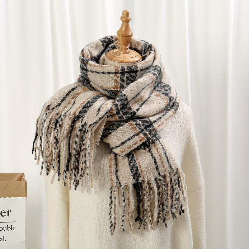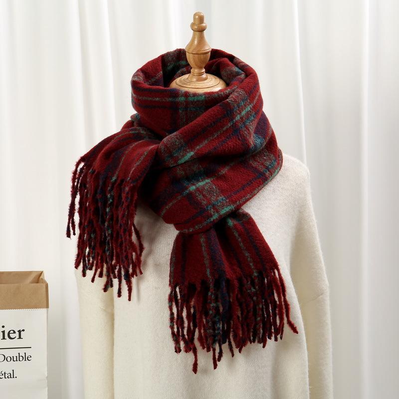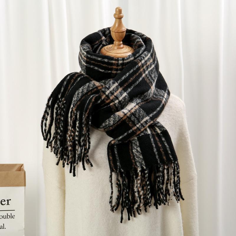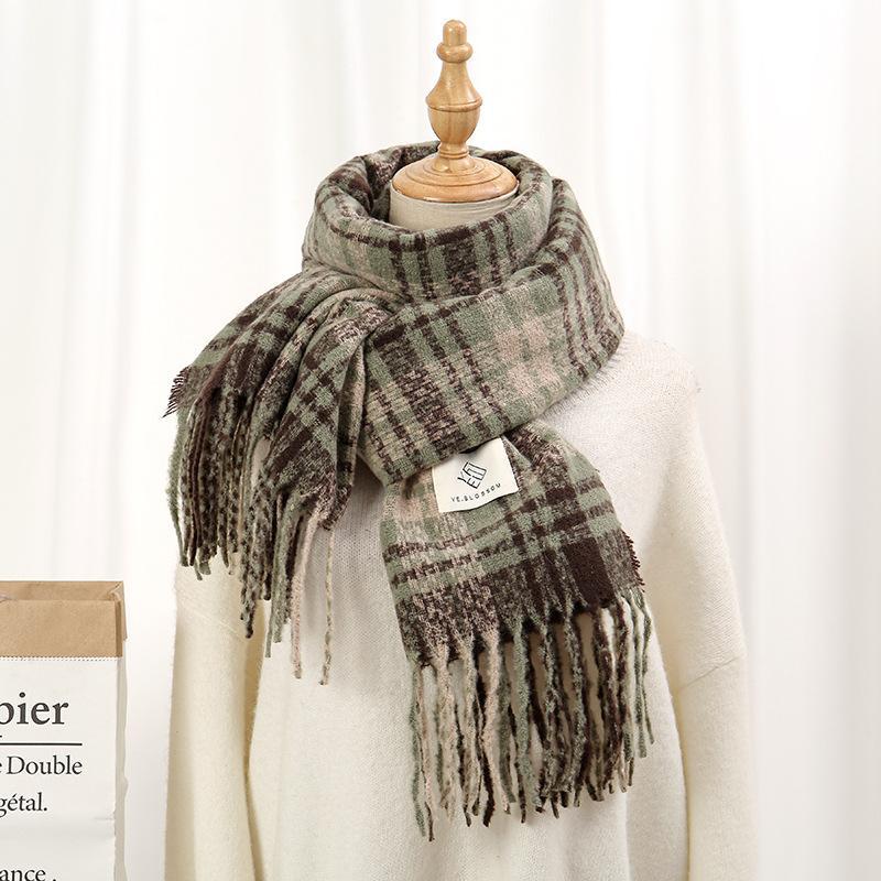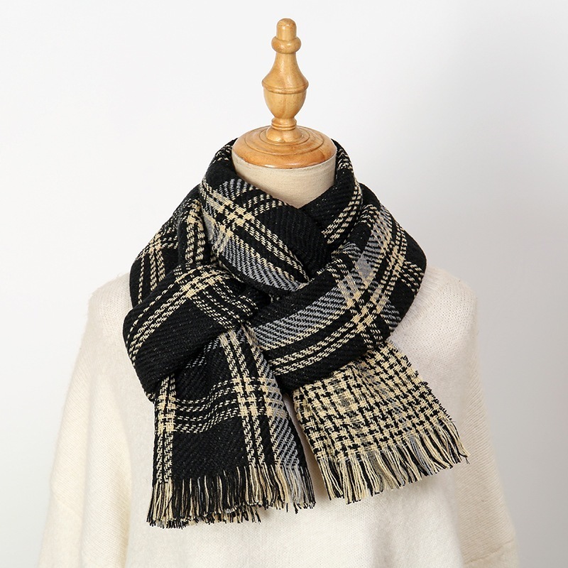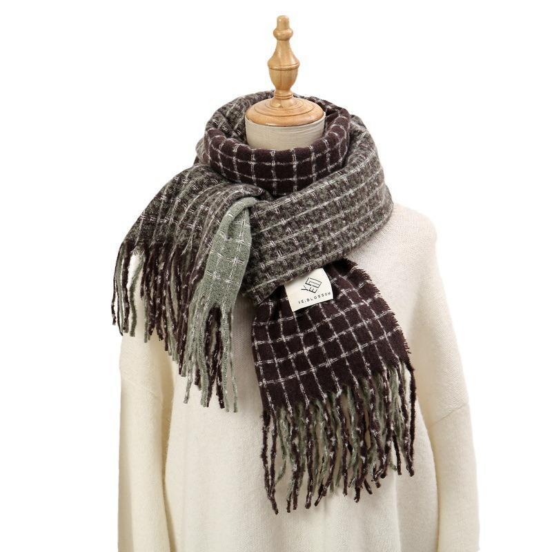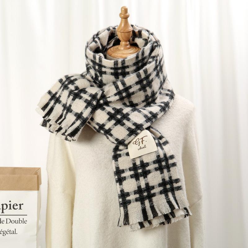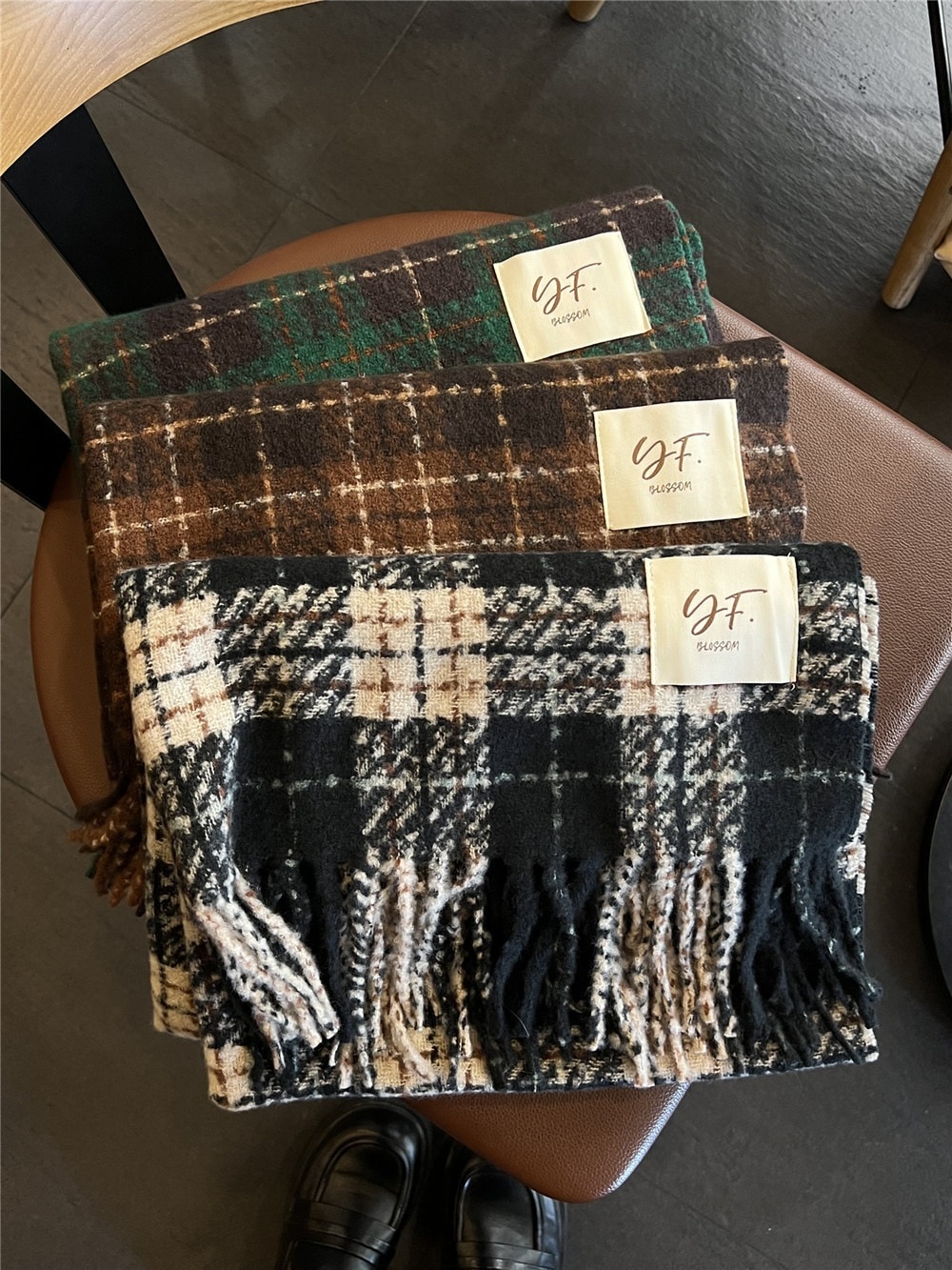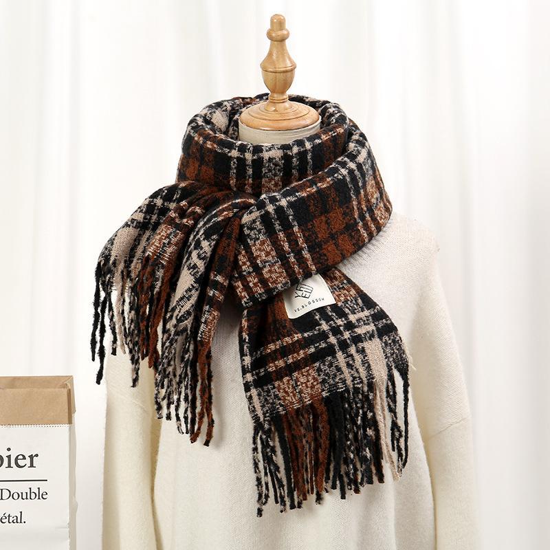 おしゃれな韓国風パッチワークフェイクカシミアチェック柄スカーフ冬にぴったりの暖かくて厚手カラーブロックチェック柄ネックウォーマー