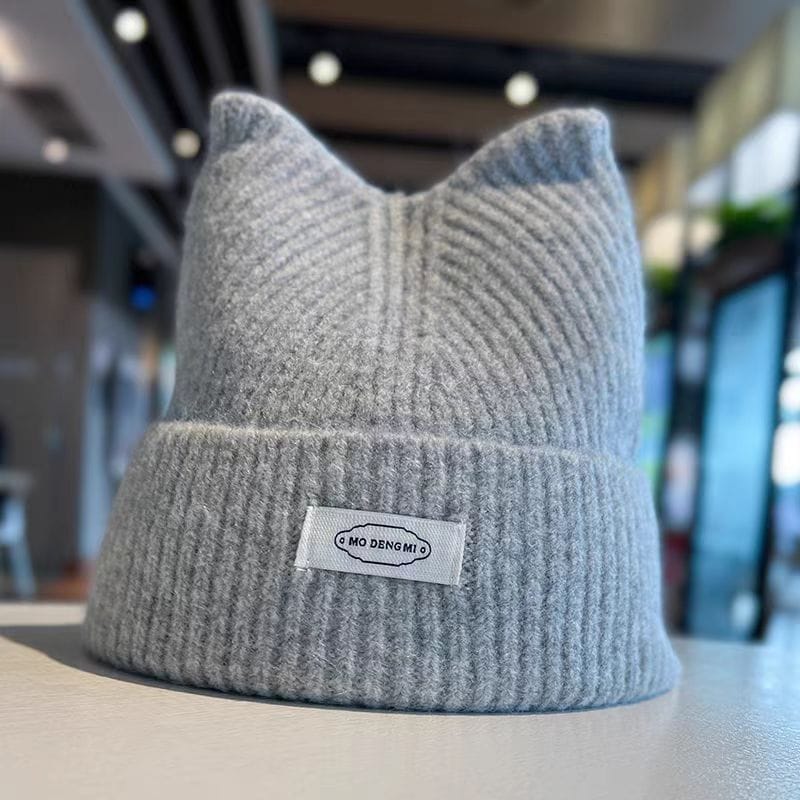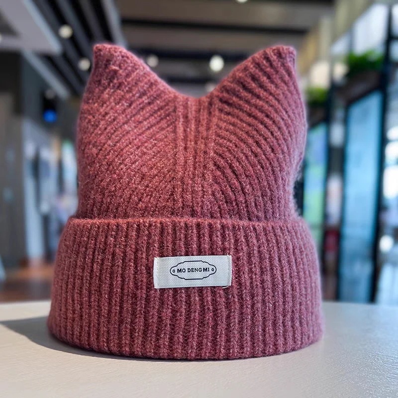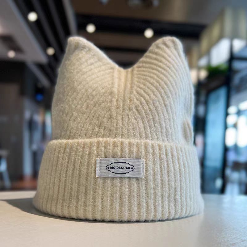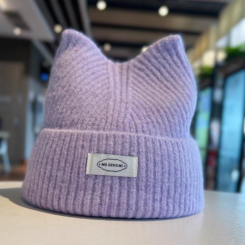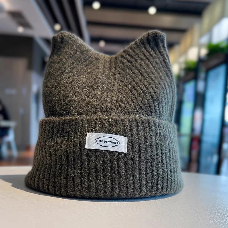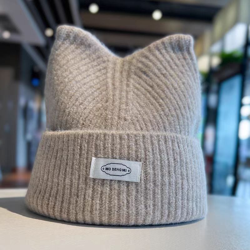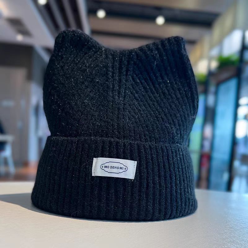 秋冬かわいい猫耳ニットニット帽子厚手であたたかく耳当て韓国