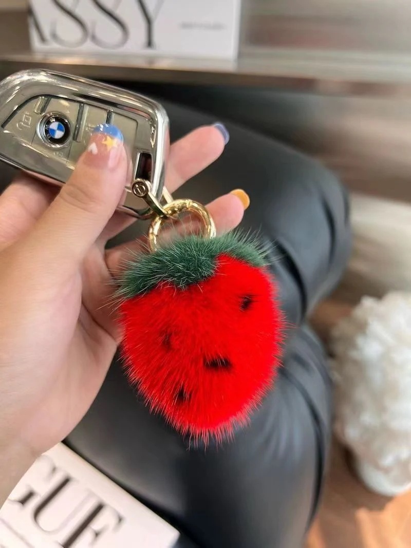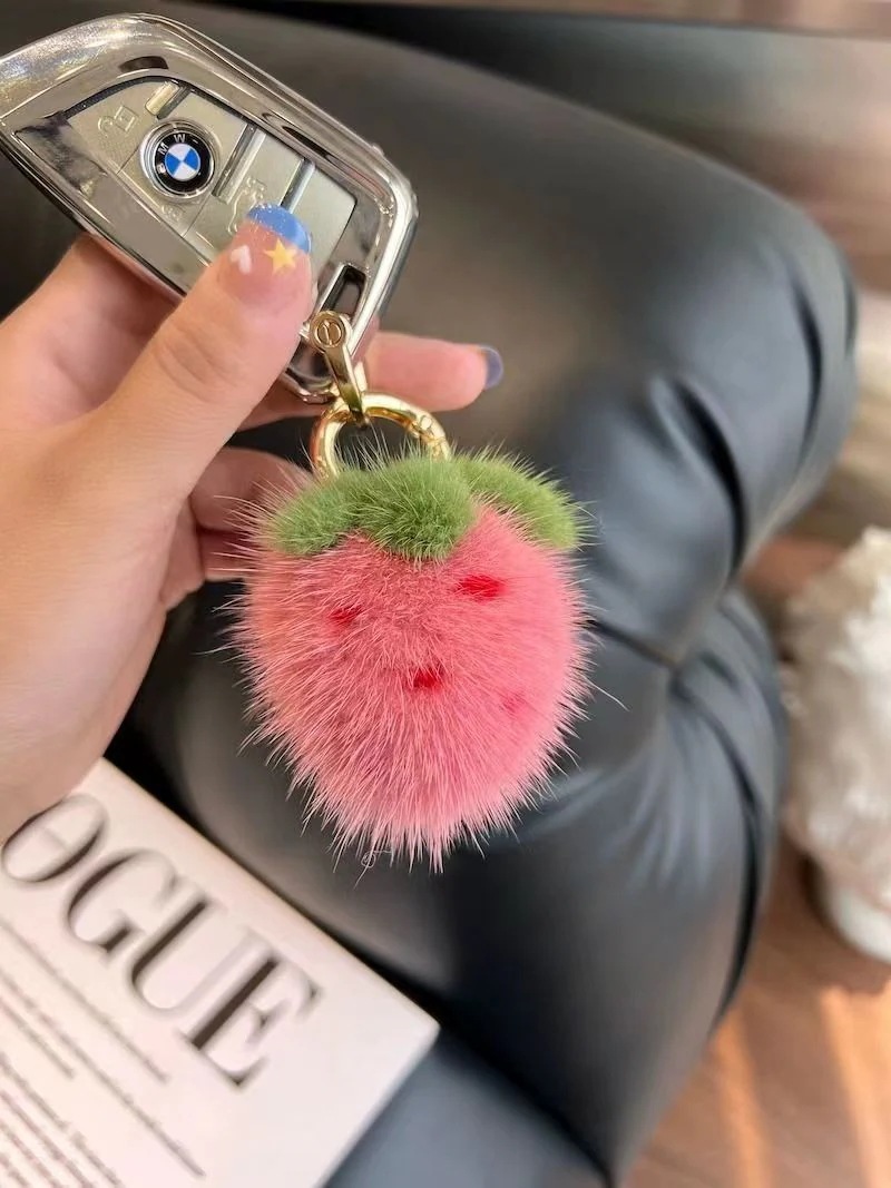 ミニ可愛いイチゴ自動車キーホルダーぬいぐるみボールバッグ飾り韓国ファッション