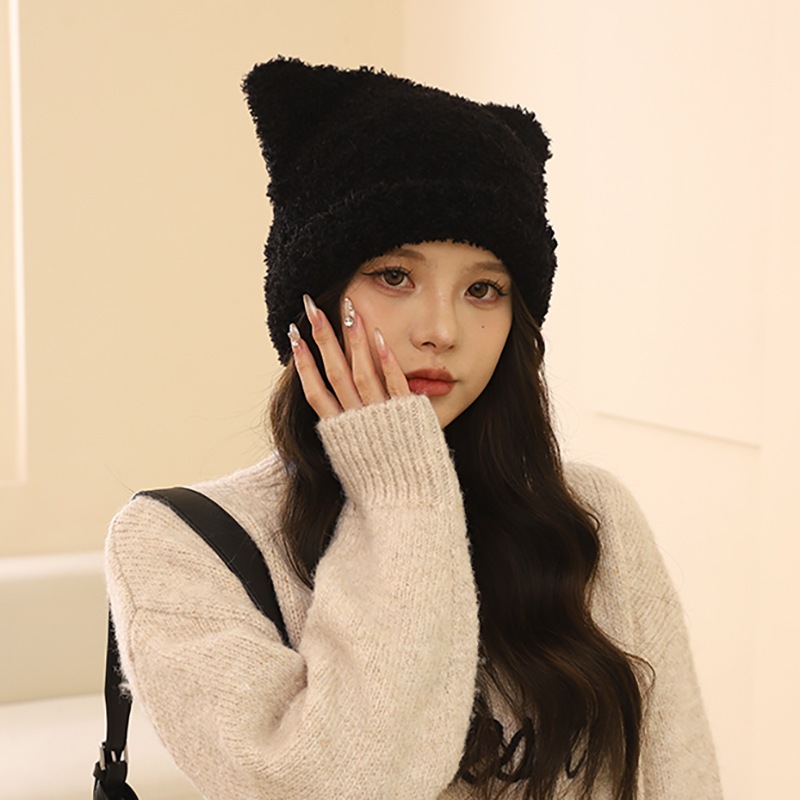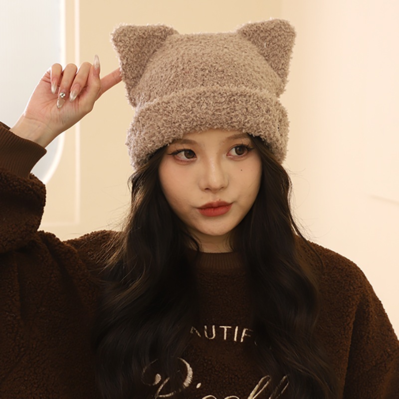 甘いかわいい猫の耳の愛の毛糸の帽子の子供の保温は耳のぬいぐるみのニット帽を厚くします