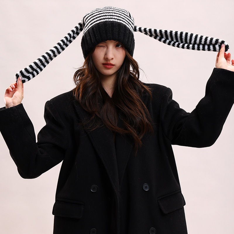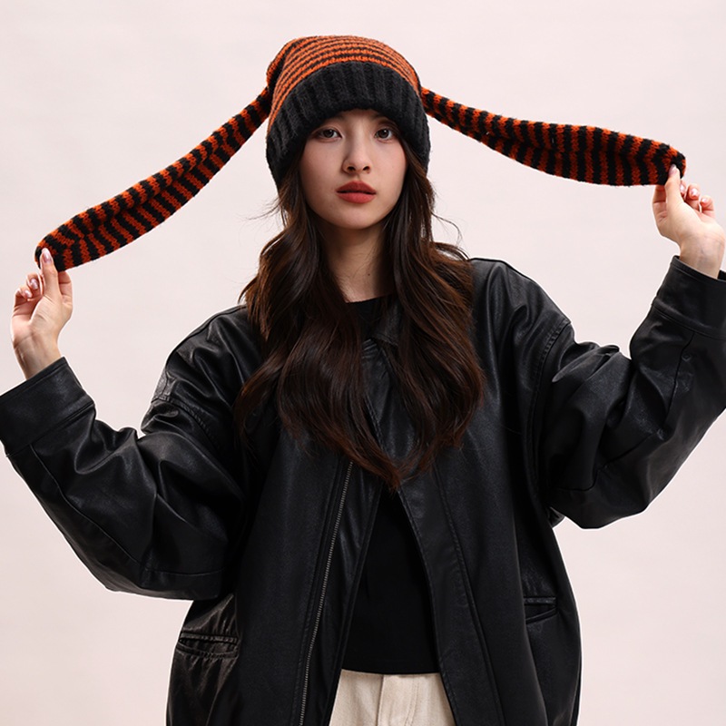 韓国のかわいいウサギの耳のニットのストライプの頭の毛糸の帽子の子供のy2kは買い物をしますファッション的な保温の冷たい帽子