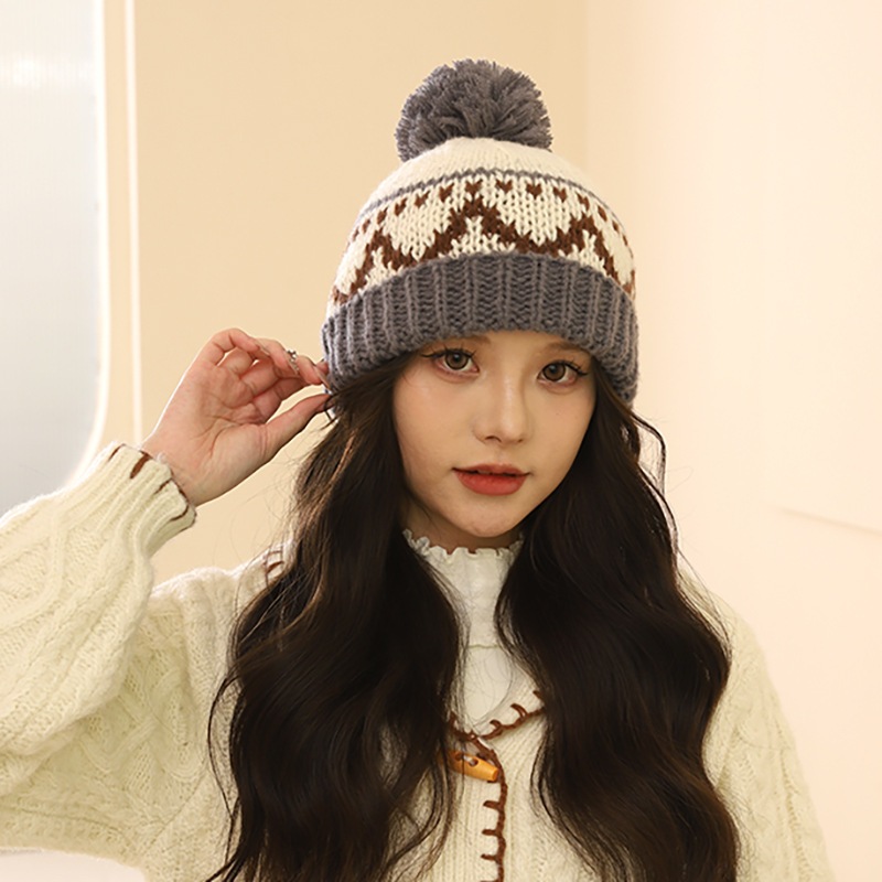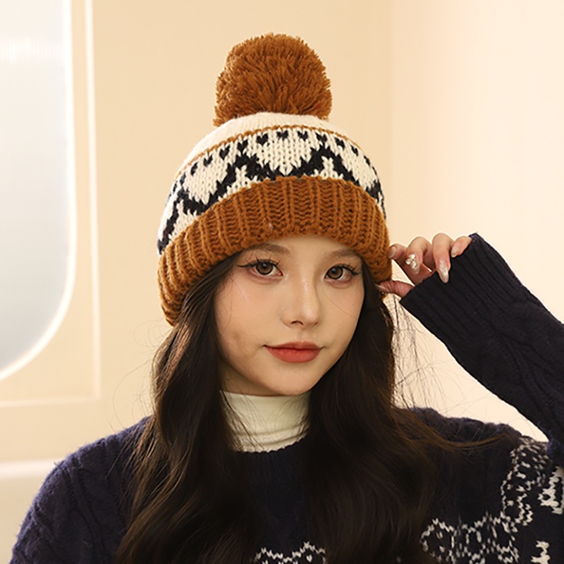 茶色のニット毛糸帽かわいい毛玉は保温耳保護帽の子供を厚くする