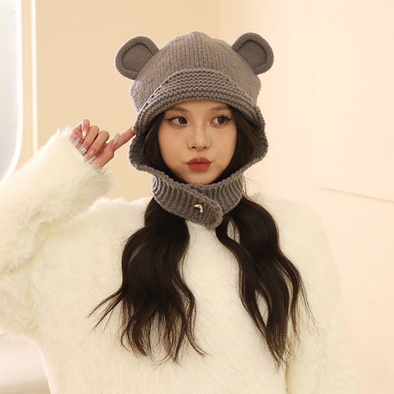 かわいい熊の耳のニットの毛糸の帽子の女性の大きい頭は顔の小さい帽子の保温の耳の帽子を現します