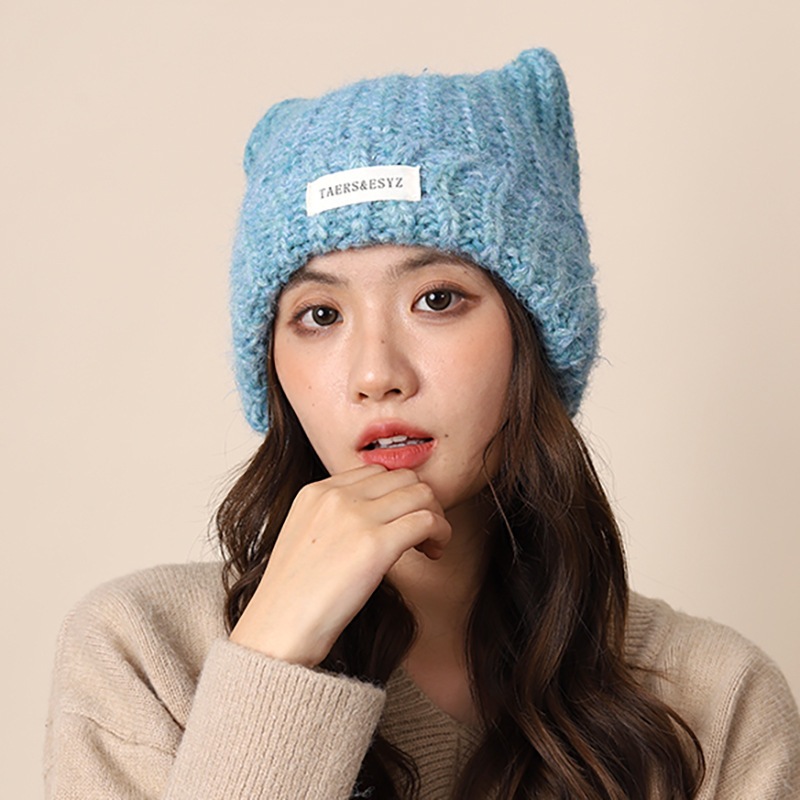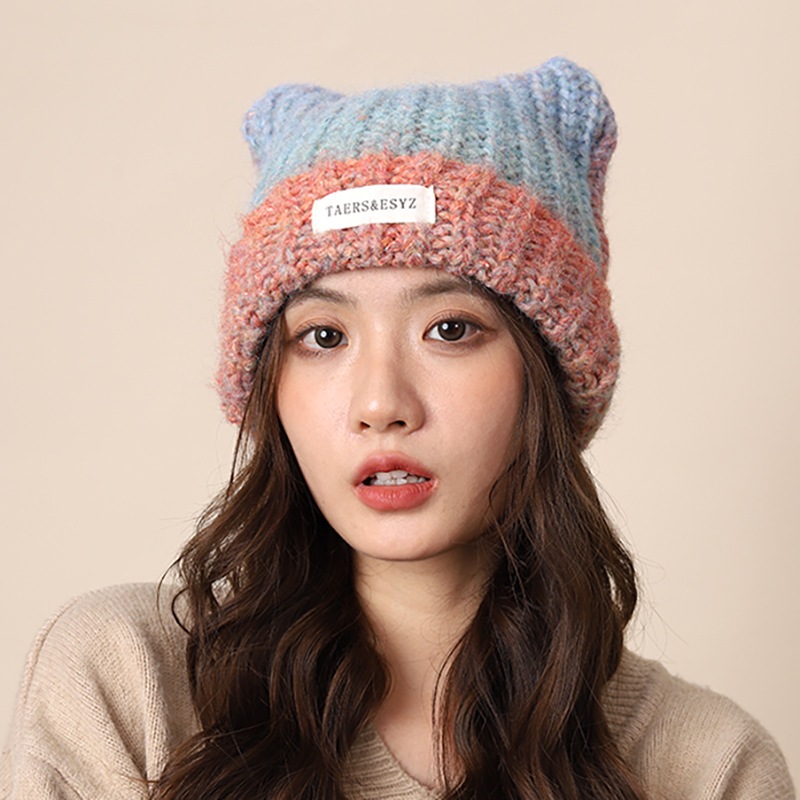 風よりかわいい猫耳グラデーションニット毛糸帽女性保温耳保護冷帽カップルは顔が小さい5