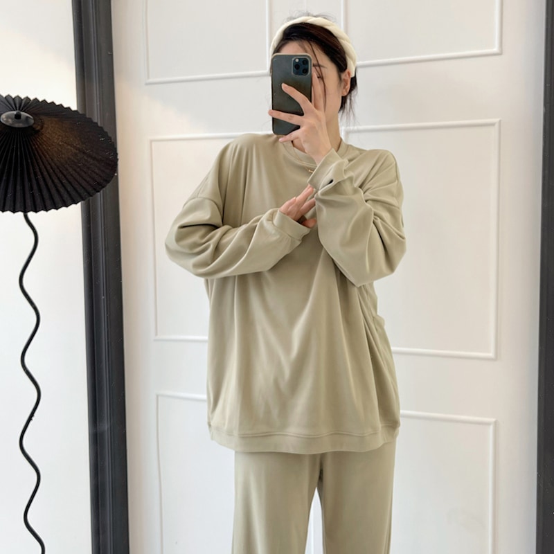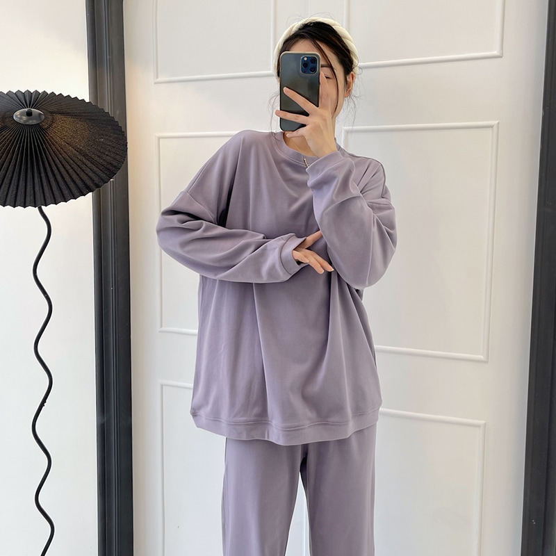 サンプルセールでいただきました。画像よりも紫っぽいパジャマで、もちもちの肌触りのいいスウェットです。洗濯しても毛玉になりにくそうな素材できにいっています!まだ肌寒い日があるので、夏になるまで重宝します!- 該当レビューはサンプルマーケットで商品を無償提供された当選者のレビューです。