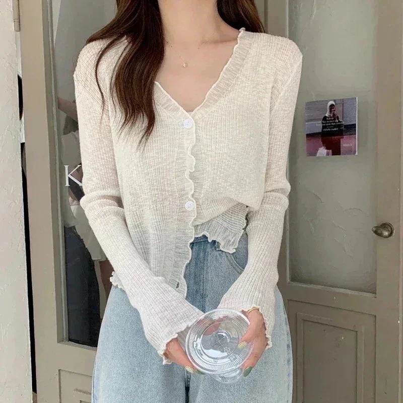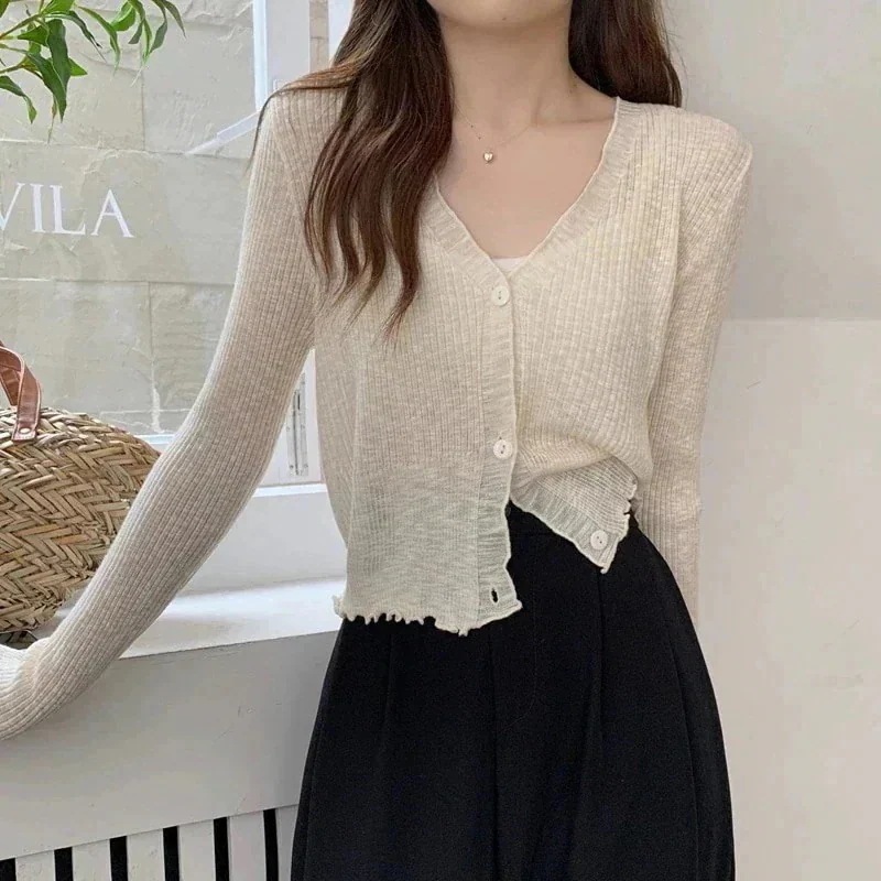 【大人気】韓国ファッション カーディガン ベーシックニット紫外線対策 ニットカーディガン 秋新作 ゆったりスウェット Vネックトップス薄手 アウター