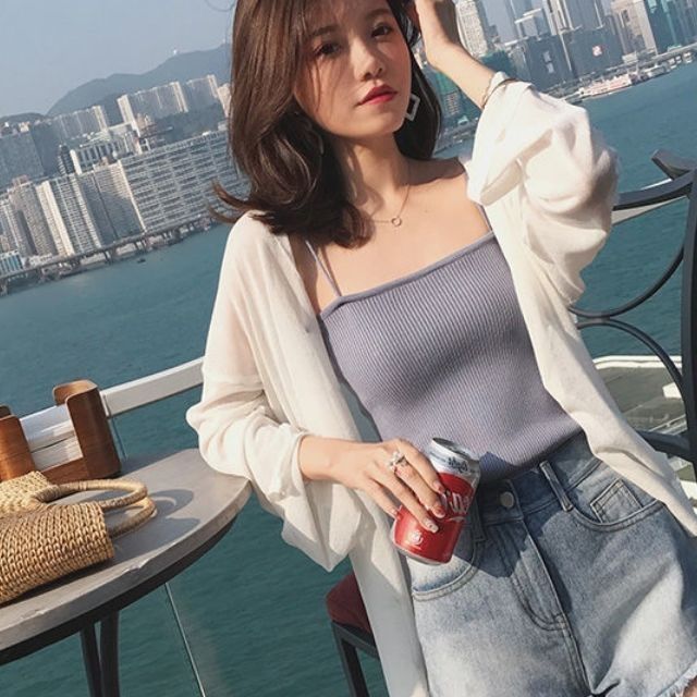 夏の日焼け止め薄手の上にvネックカーディガン/リゾート/単品/ゆったり韓国版/ニットを合わせます