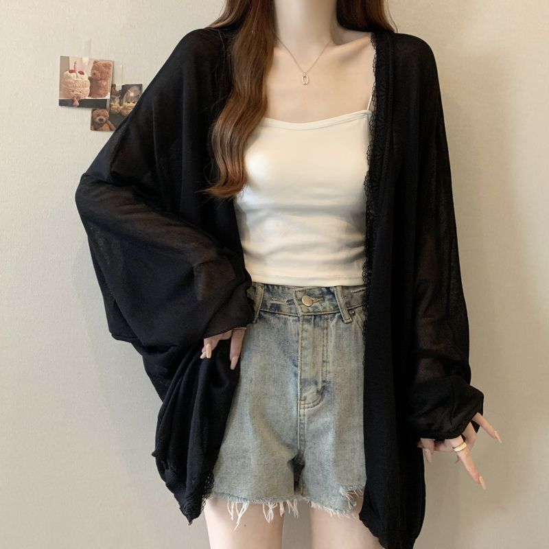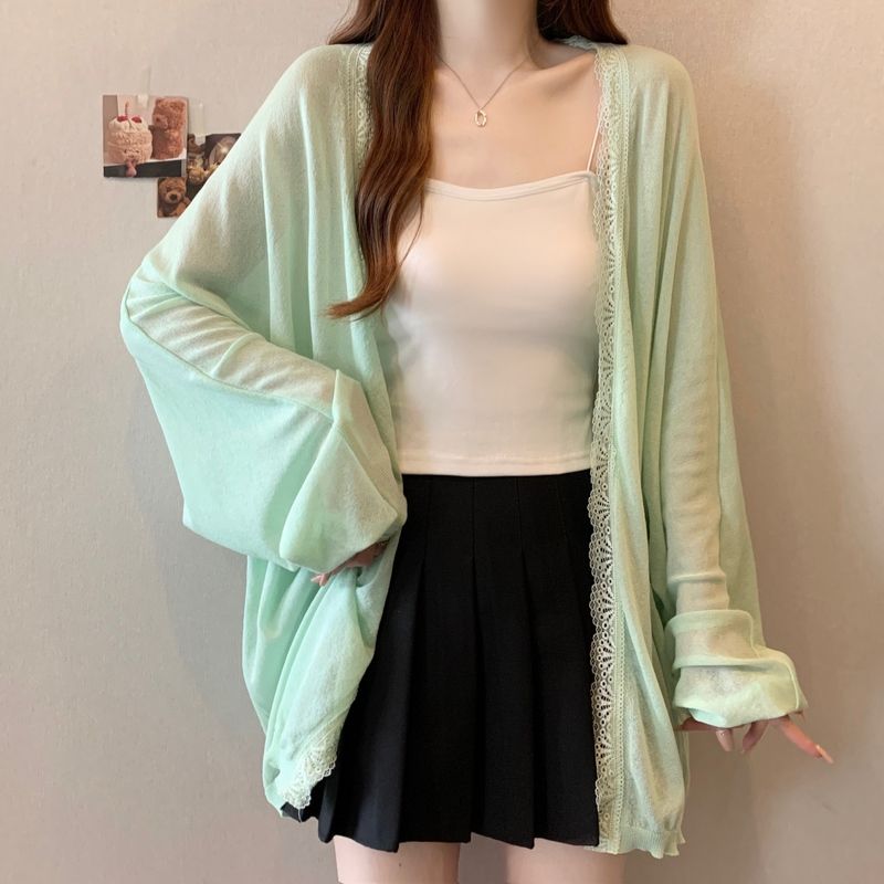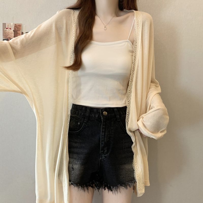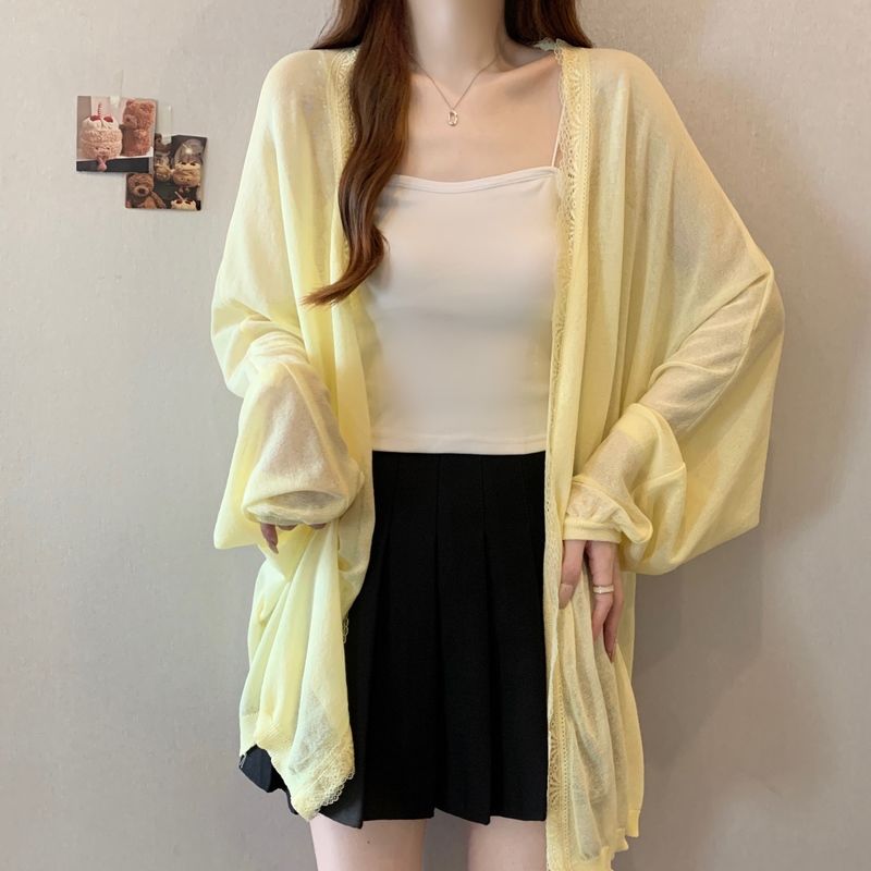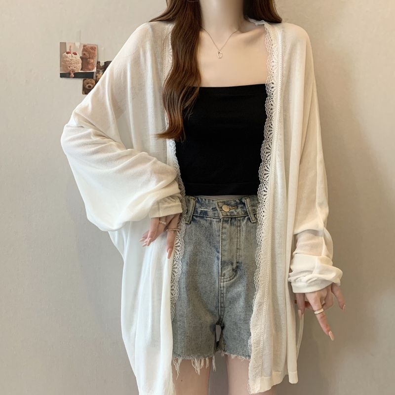 夏の日焼け止めシャツ女性韓国系ミドル丈レースコートカーディガン