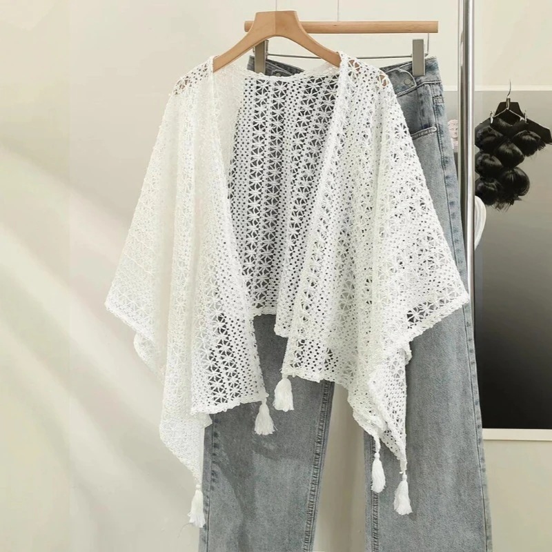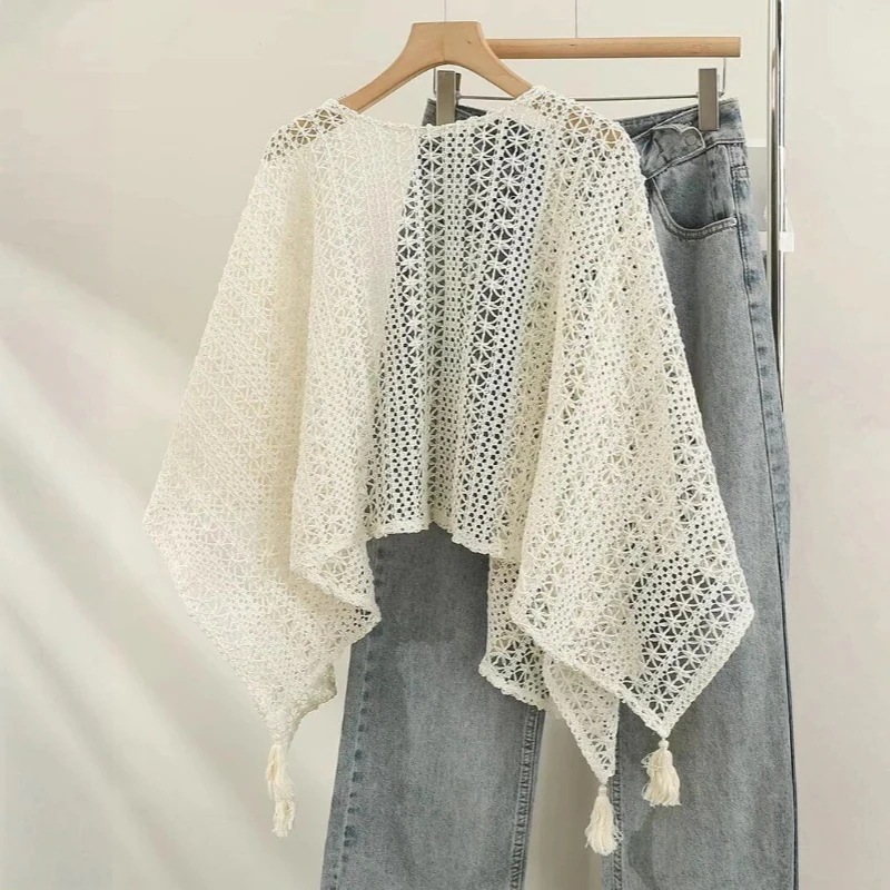 透かし彫り日焼け止めフリンジカーディガン夏の薄手のストールの上にマントをかけます