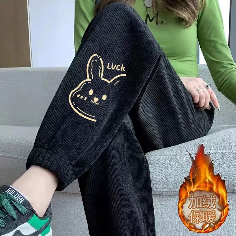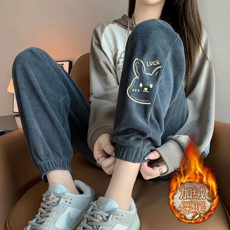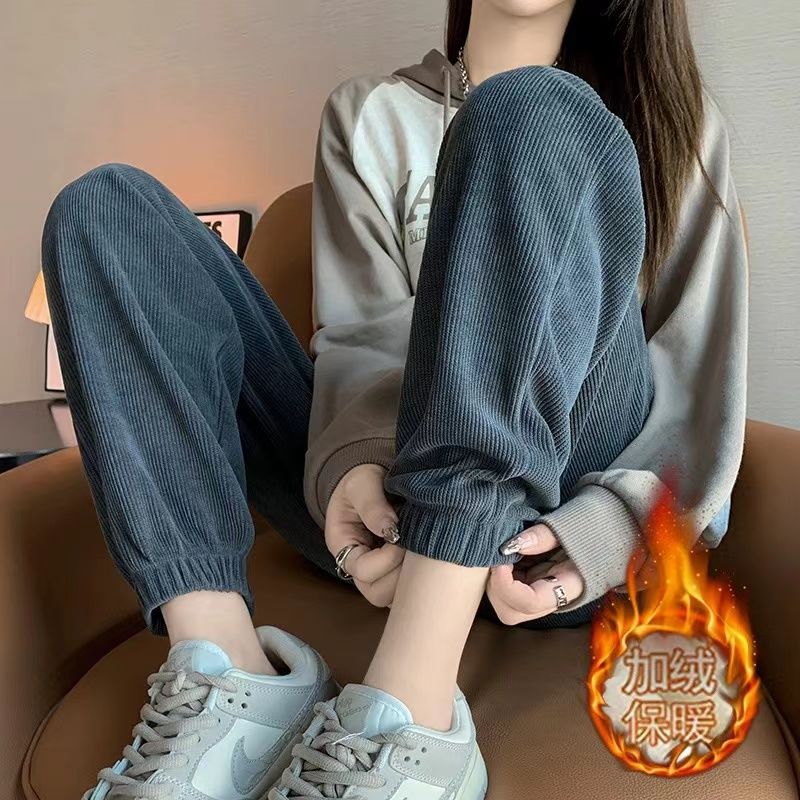 秋冬 裏起毛 厚手 コーデュロイ カジュアル ズボン レディース ins トレンド ゆったり 百掛け 束足 スウェットパンツ