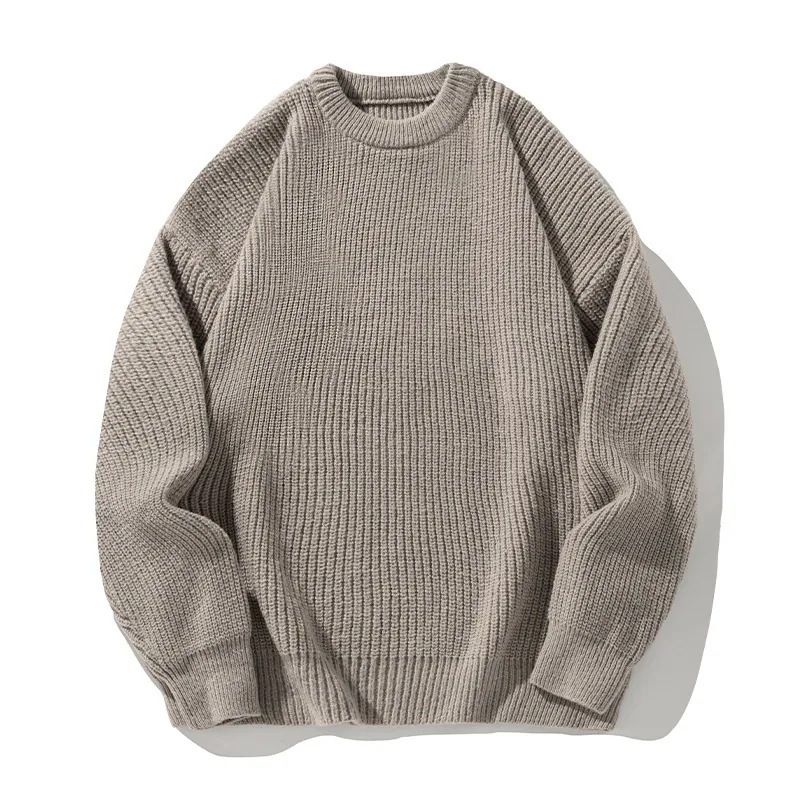 ルーズフィット粗編み丸首セーターメンズ秋冬レトロニットトップス