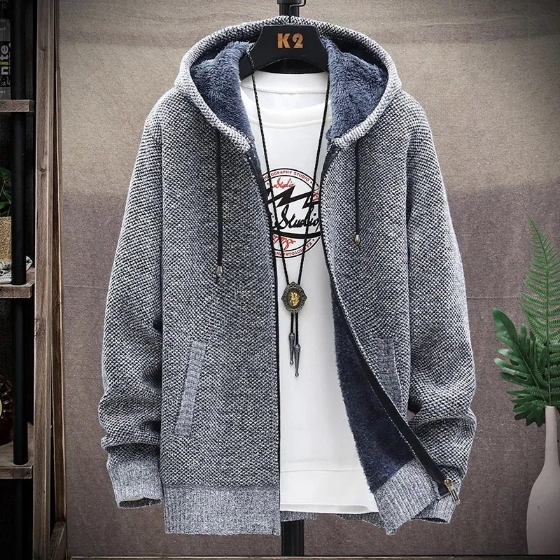 【厳選メンズ服】メンズ カーディガン フード付き秋冬用 厚手裏起毛 加工 トレンド若者向け リラックスフィット ジャケット アウター