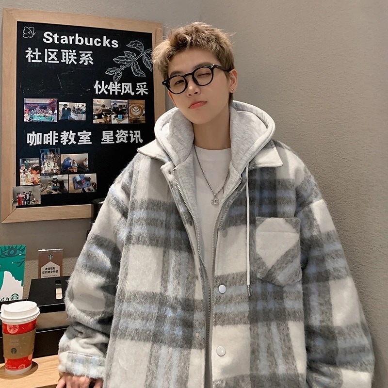 【厳選メンズ服】2025 秋冬新作 メンズ フェイクツーピース チェックコートアメリカントレンドブランド シャンゼリゼフード付き カジュアルジャケット アウター