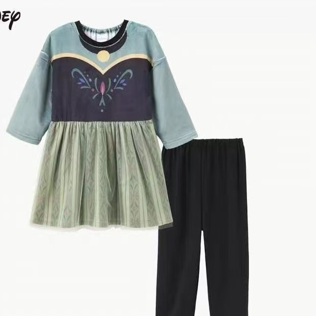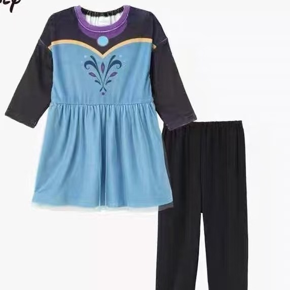 大人気児童服 アイザとアナ(冰雪女王のキャラクター)のパジャマセット(上着とパンツ) 家居服 サイズ90 - 100cm