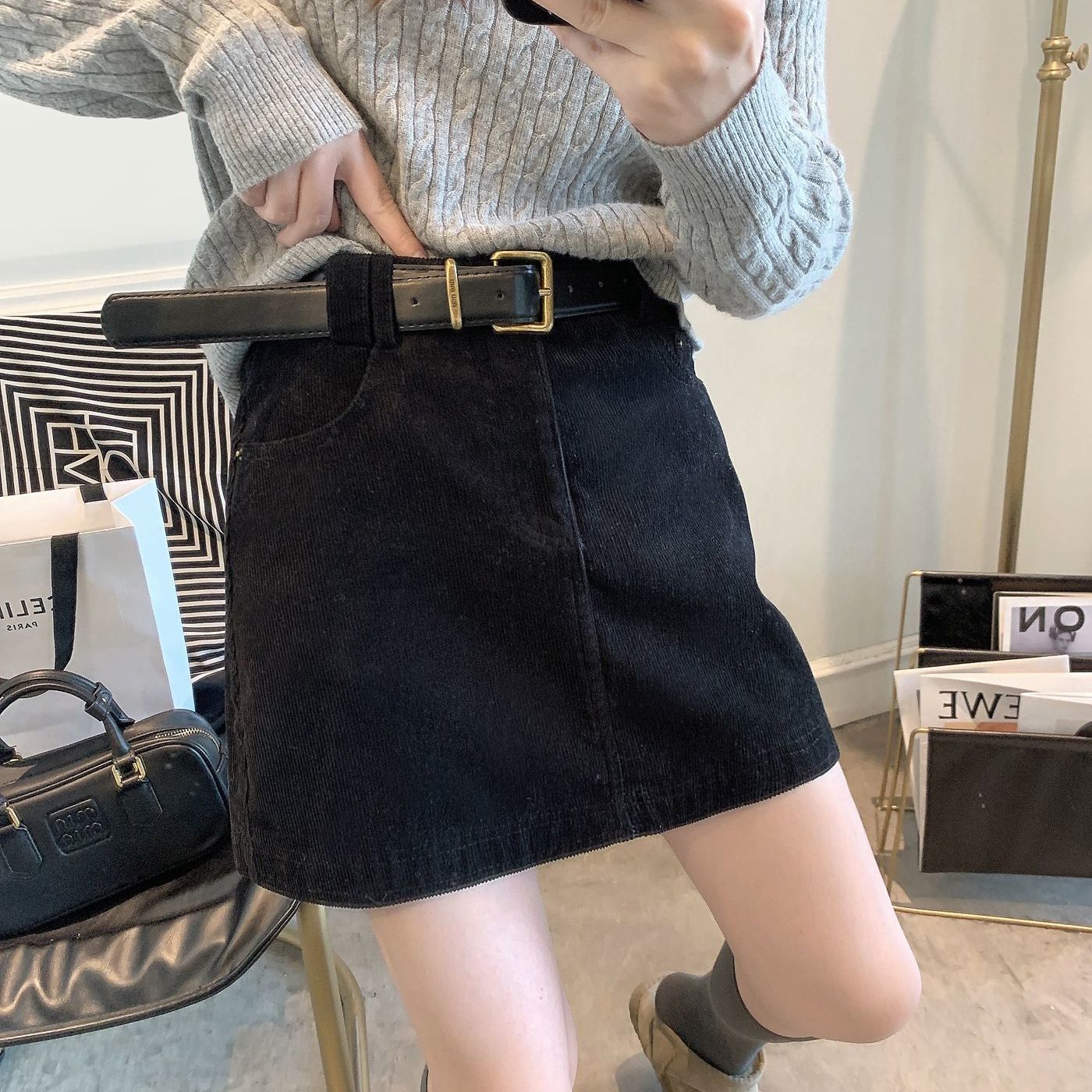 【人気超目玉】ミニスカート カレー ハーフスカート レディース 秋冬 2025 新作 コーデュロイ ハイウエスト ハーフスカート 背が高く見える パッケージ ヒップ ショートスカート ミニスカート