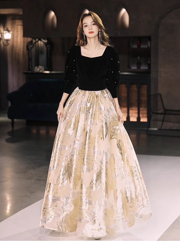 2025年新作レディースフレンチブラックイブニングドレス淑女の気質高級年次総会司会ドレス