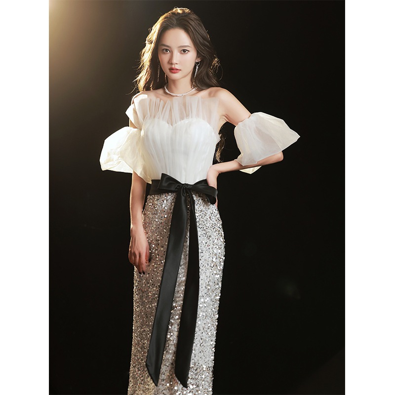 女性のためのイブニングドレス2025新しいスタイルの軽い高級ニッチ高級フレンチスタイルの高級フィッシュテール宴会気質の女性のドレス
