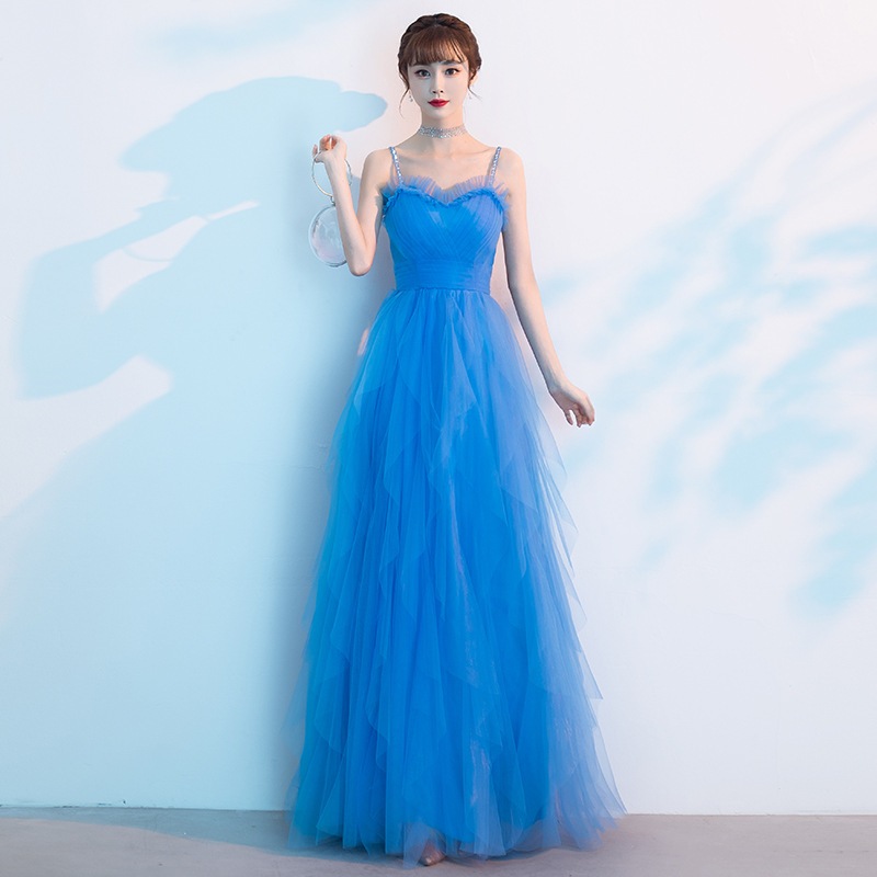 青いフランスのイブニングドレスの女性2025セクシーな青いサスペンダードレスは年次会議を主催し通常はドレスを着ることができます