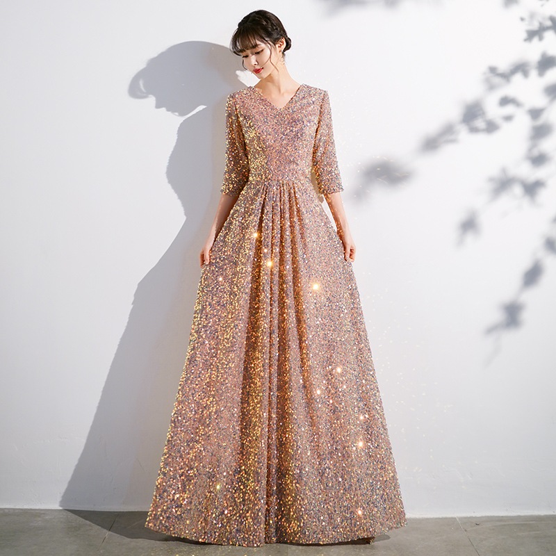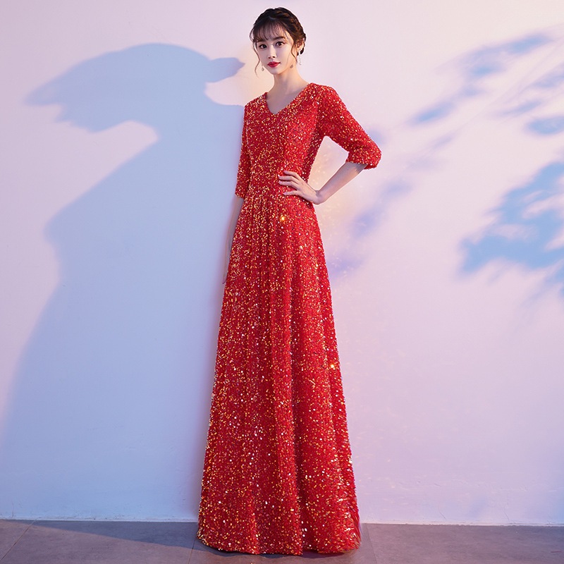 合唱団のパフォーマンス衣装女性用ロングスカートピアノ演奏指揮者衣装赤い歌スパンコール司会卒業式イブニングドレス