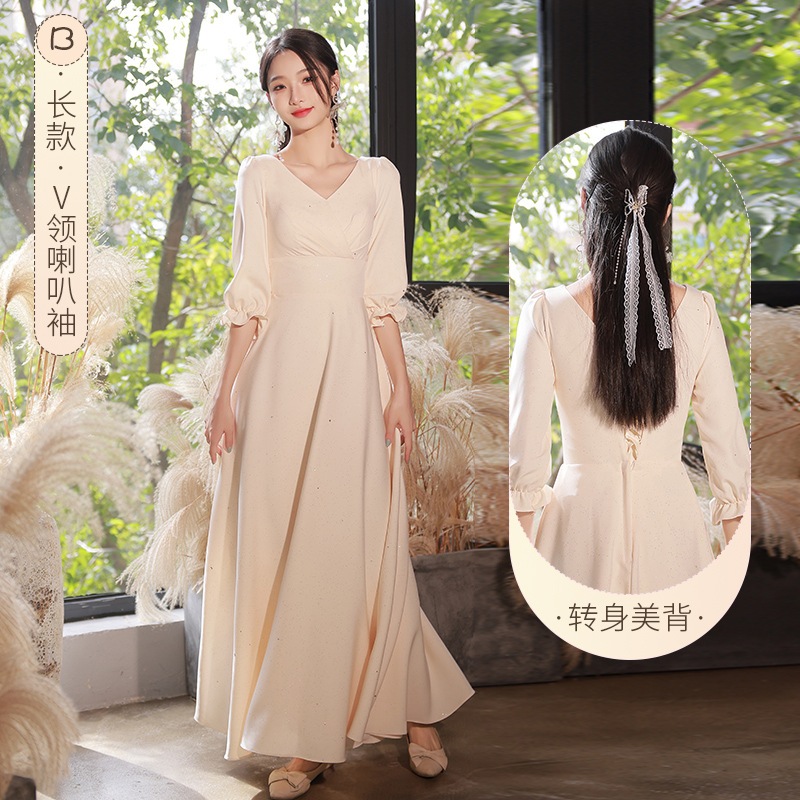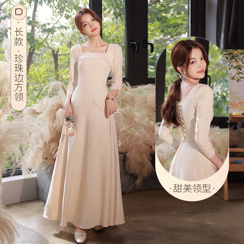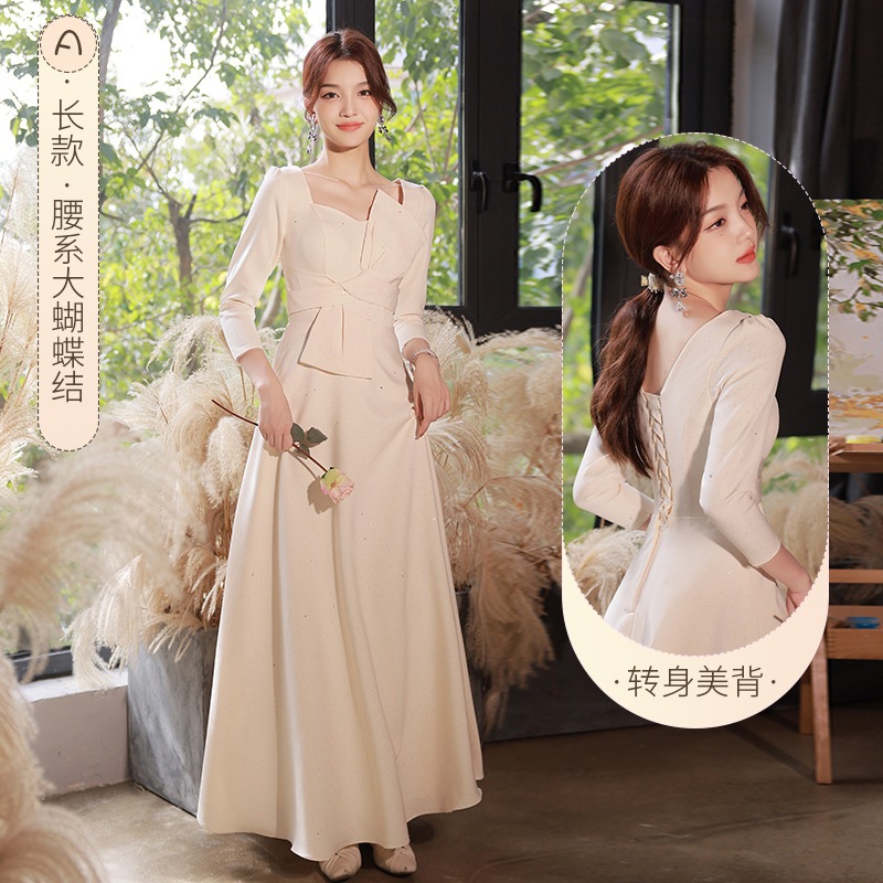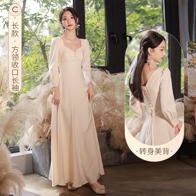 花嫁介添人ドレス 2025 春新作 長袖 サテン イブニングドレス 春の姉妹グループ 花嫁介添人ドレス シャンパンカラー 高級