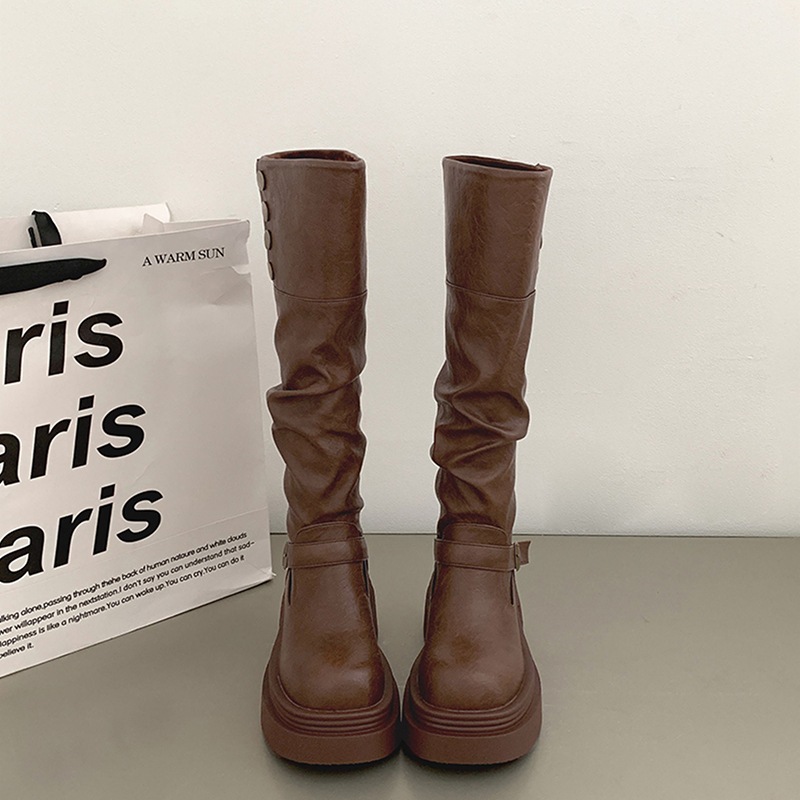 【本日限定】裏起毛 騎士ブーツ ロングブーツ ブーツ レディース レトロ スクエアトゥ 太めヒール ブーツ 歩きやすい長靴 [6cm] [3タイプ]