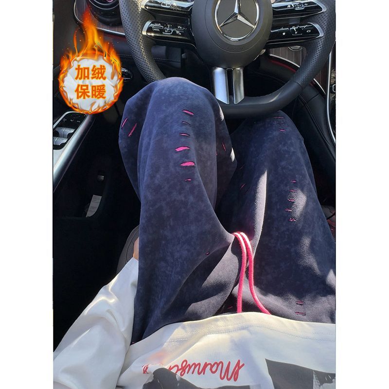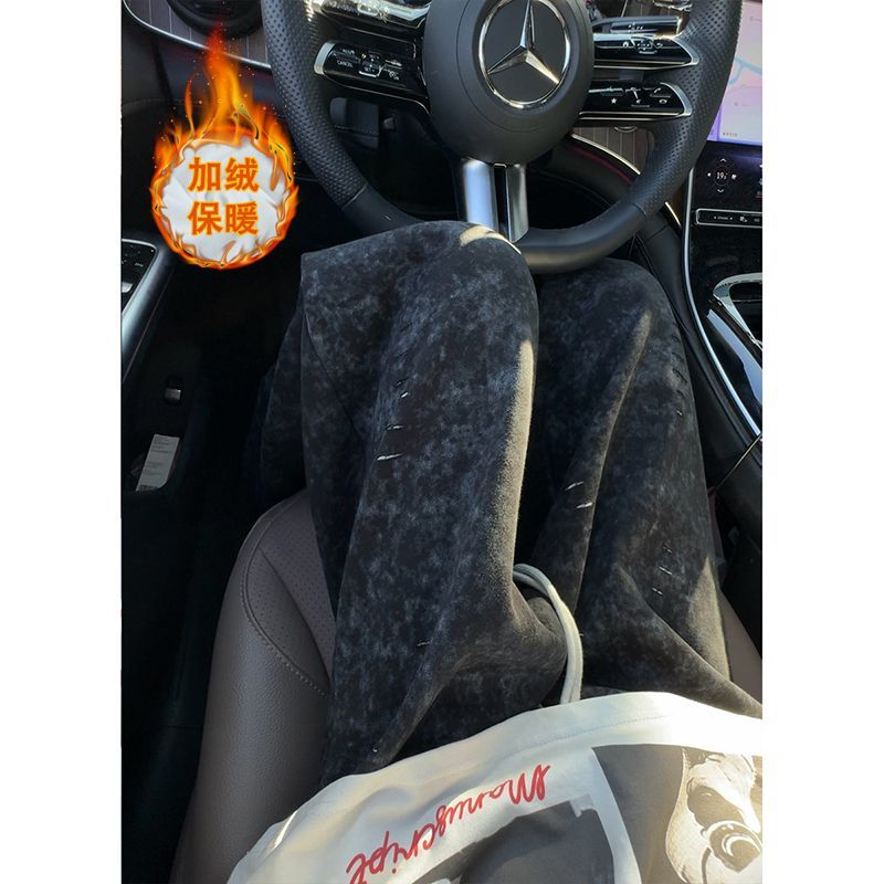 裏起毛 トレンド メガトン級 暖かくし カジュアル ズボン アメリカ式 秋冬 ぶつかって色 水洗い ドレープ感 ストレートパンツ