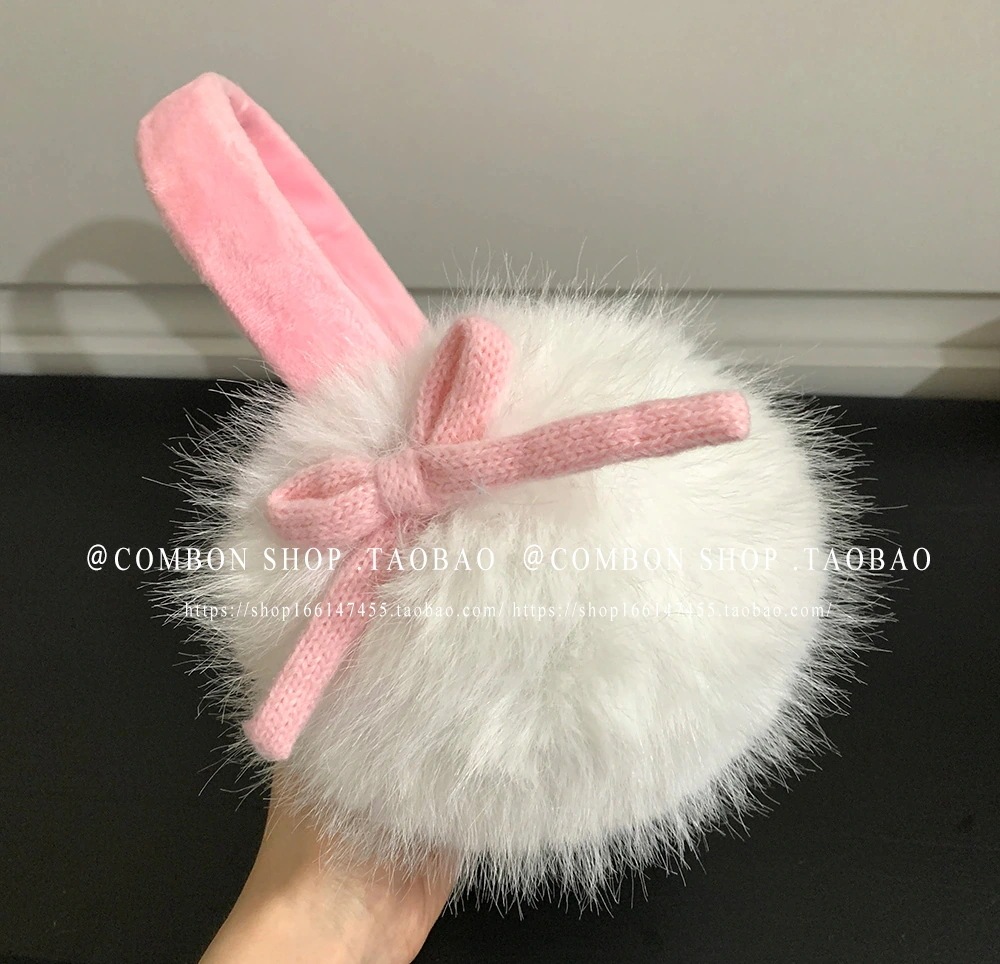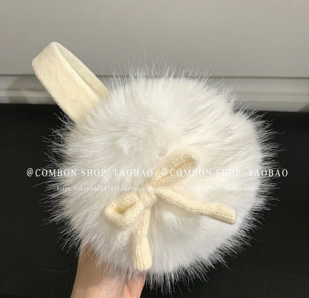 イヤーマフ 女性用冬用ホワイト ふわふわ可愛い毛布 暖か防寒耳カバー 自転車用学生用 ブルーリボン付き イヤーマフ