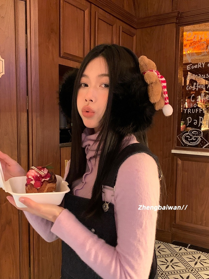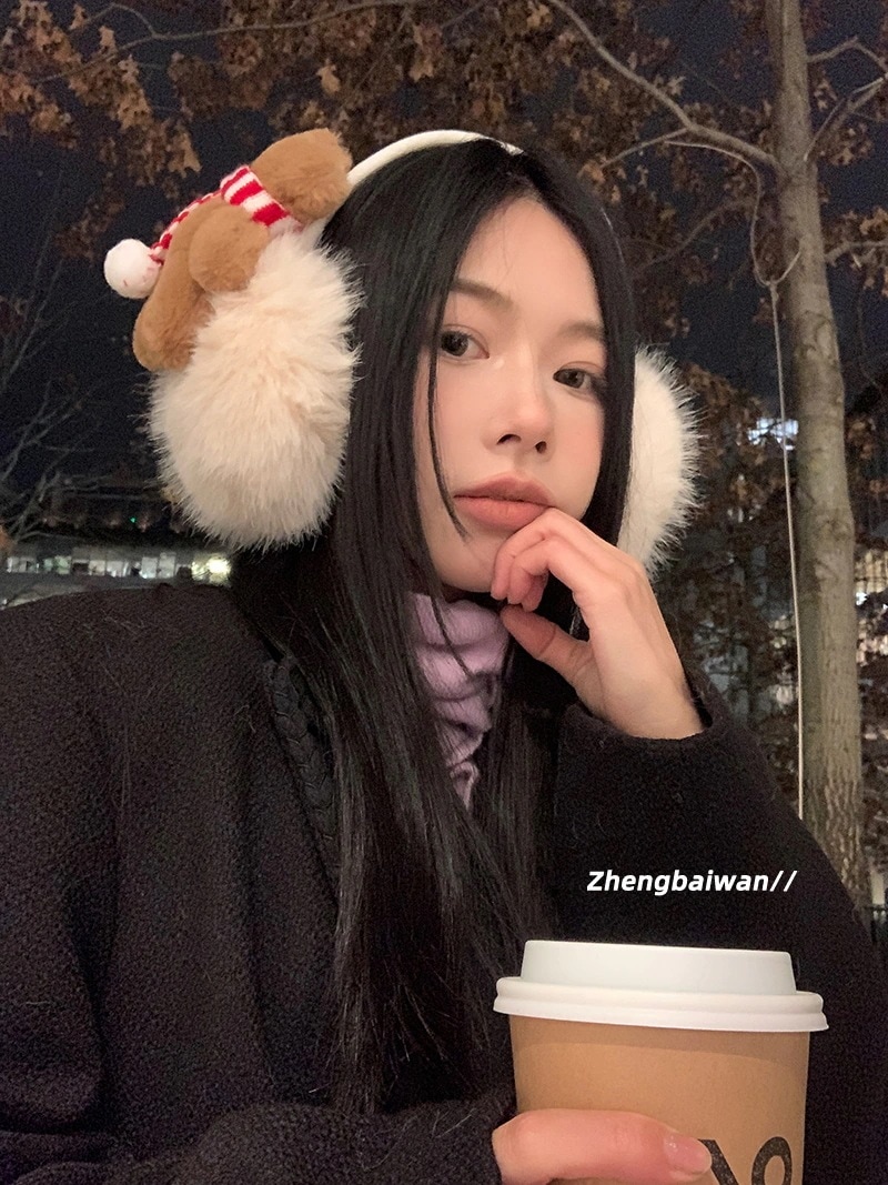 保温イヤーマフ 女子学生向け 可愛いクマ 冬季用 クリスマス・新年用 耳保護 防寒 折りたたみ式 サイクリング用 イヤーマフ