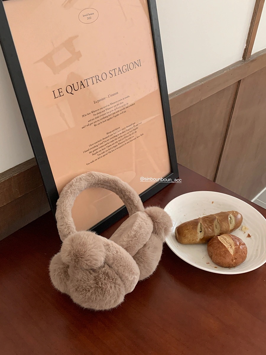 甘くて可愛いふわふわイヤーマフ 冬季用 防風防寒 サイクリング・スキー用 耳を保護する保温ボール付き耳カバー イヤーマフ