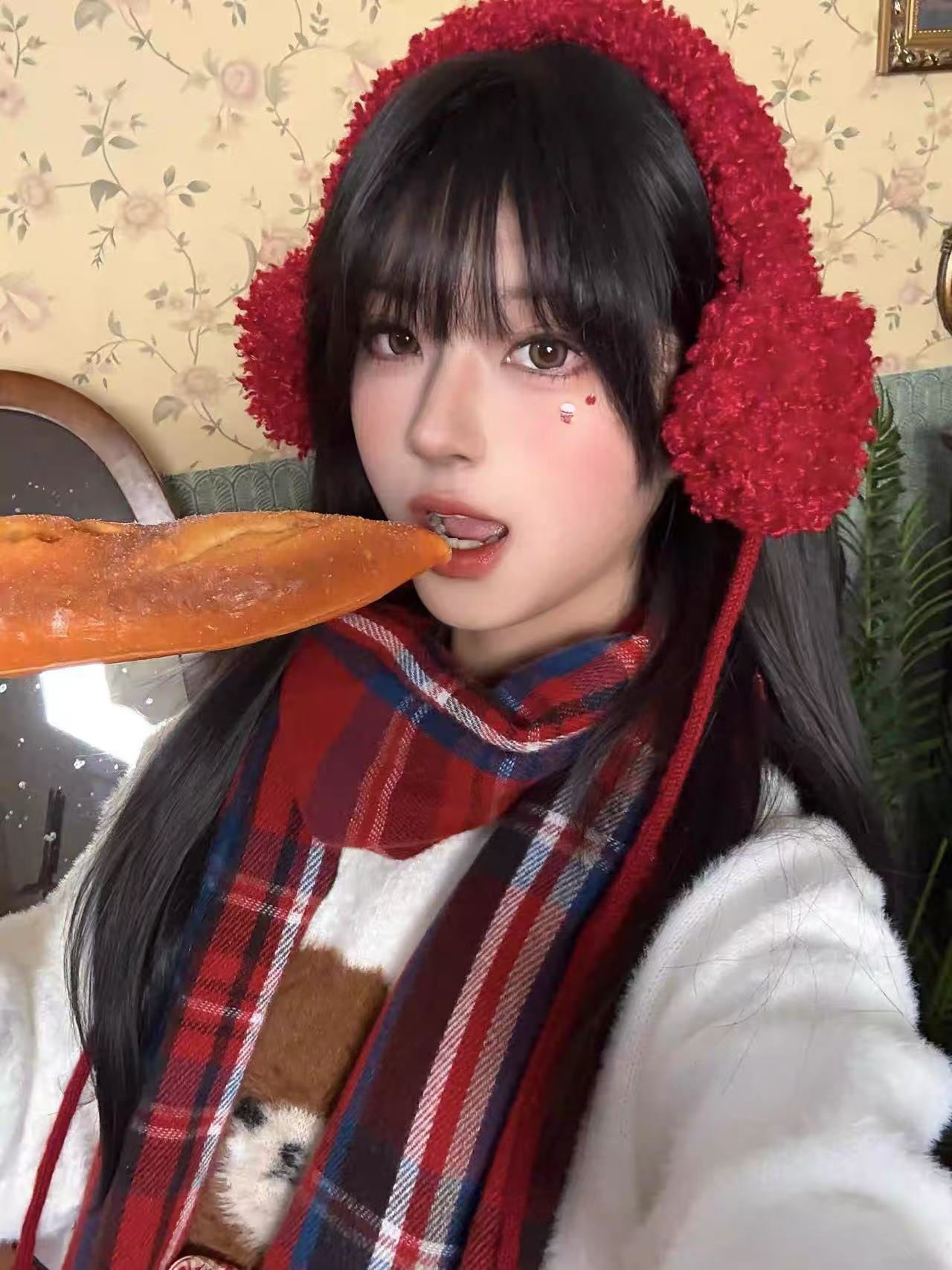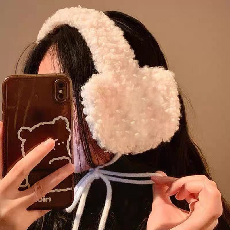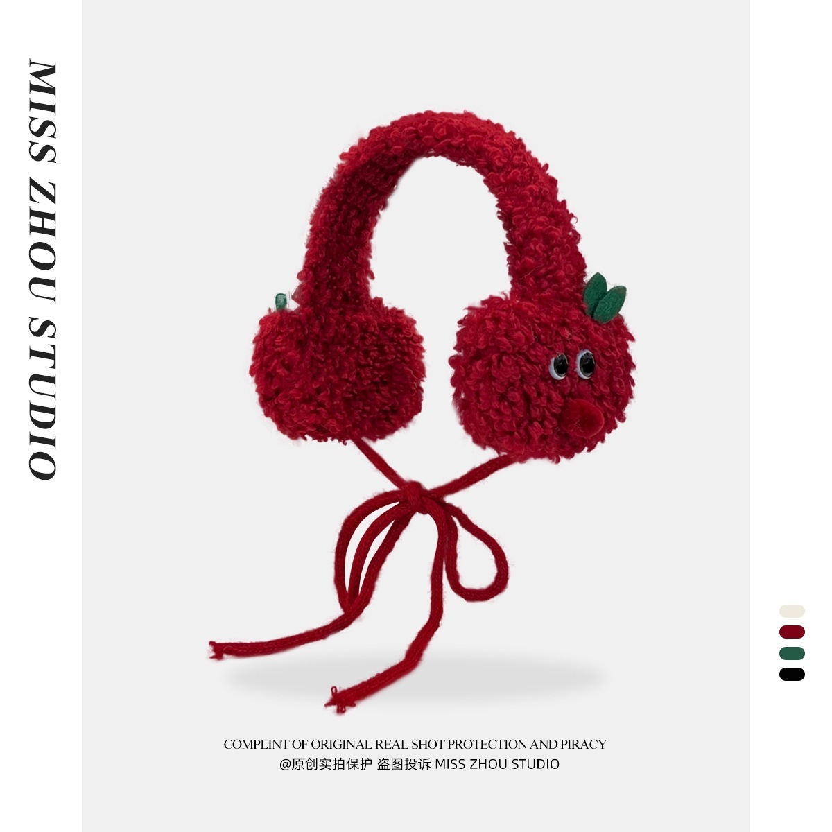 秋冬ニット耳当て女子学生向けアニメ リンゴ柄可愛いリボン付きふわふわ耳当て防寒保温耳カバー耳当て イヤーマフ