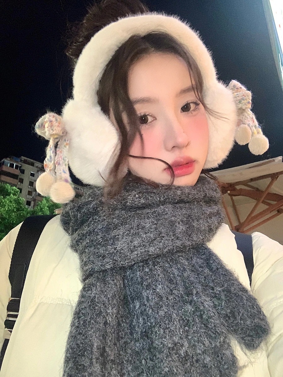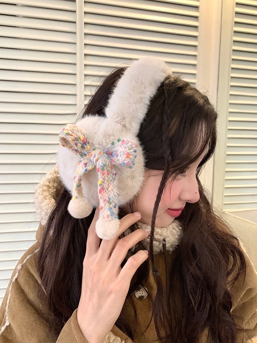 冬季保温リボン付きふわふわイヤーマフ女性用 自転車・アウトドア用イヤホン式防寒耳当て 学生向けシンプル厚手イヤーマフ
