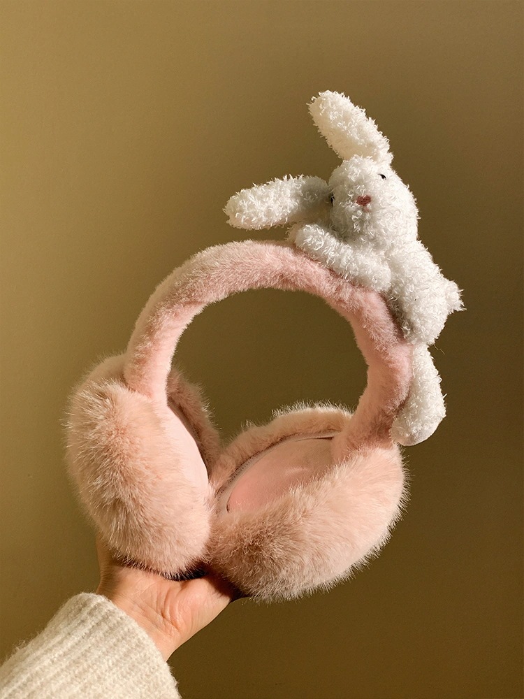 韓国風ウサギの可愛いふわふわ防寒イヤーマフ女性冬用 自転車用防寒耳カバー学生用耳包みイヤーマフ甘めデザイン耳当て イヤーマフ