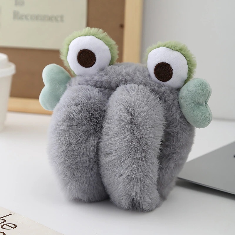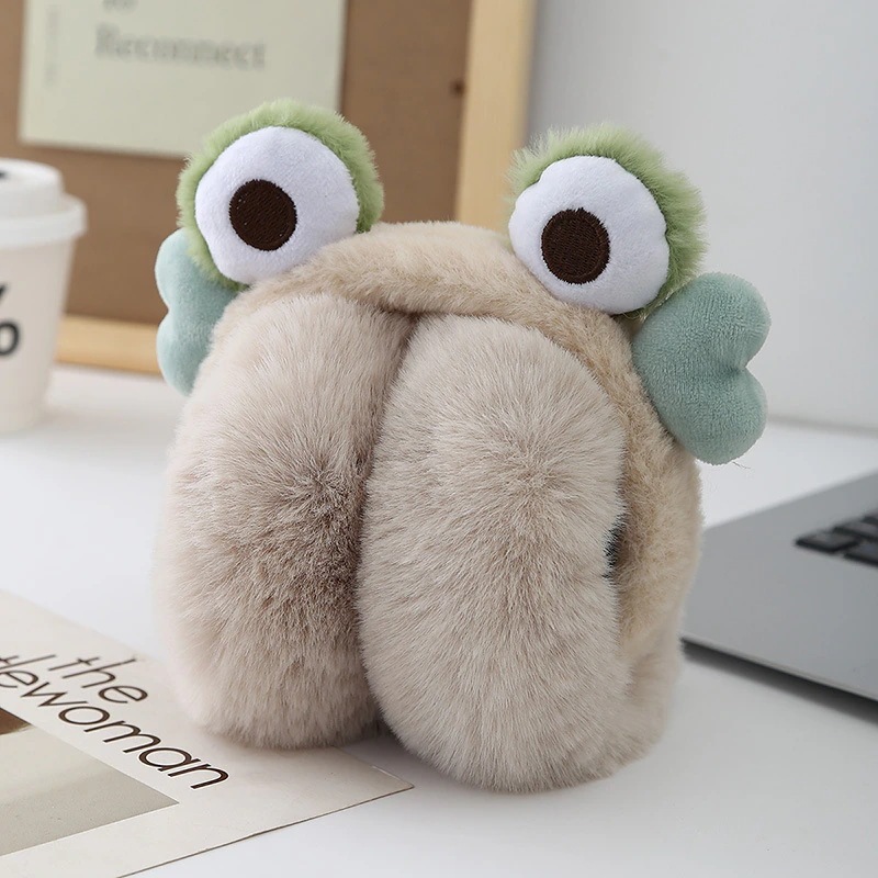 カートゥーンカエル折りたたみ式イヤーマフ防寒女性用 秋冬用可愛い耳当てウサギ毛風防寒耳カバー耳覆い防寒イヤーマフ